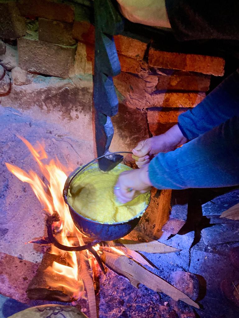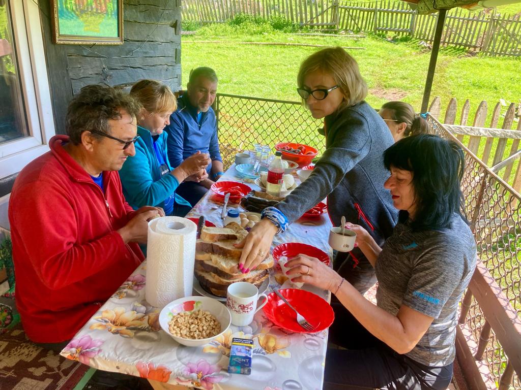 Și ne-a uns la suflet această ședere, drumeția din cursul zilei și ospitalitatea de care am avut parte. Câte am mai povestit și cât ne-am mai bucurat de căldura focului din vatră, de laptele și mămăliguța aburind în ceaun, de sărmăluțele atât de gustoase, de ciorba de salată pregătită special pentru noi și de câte și mai câte alte bunătăți care ne-au fost puse la dispoziție în acest loc uitat de lume, în acest colț de rai.