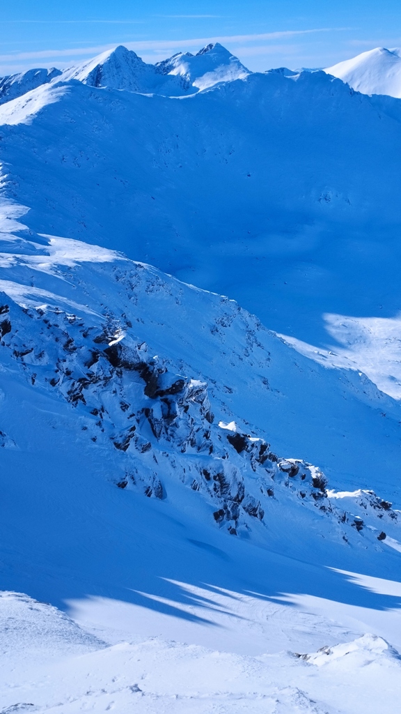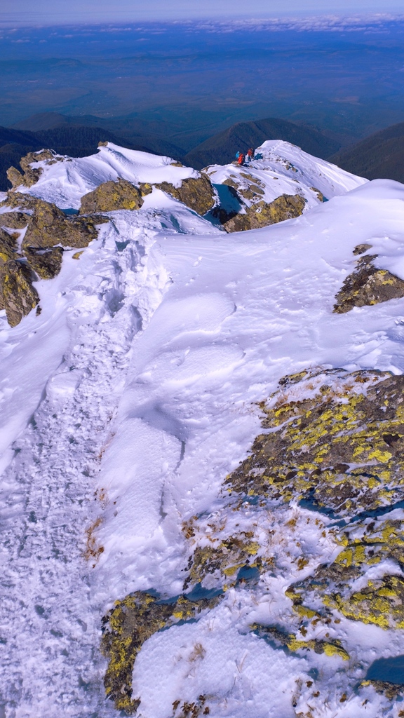 În partea opusă, vârfurile Scara, Budislavul și Suru completează partea vestică a crestei Făgărașului, iar spre sud nu se poate trece cu vederea Oltenia cu al său Olt șerpuitor și, desigur, în plan mai apropiat, mult prea iubita mea Cozia. Iar, un pic mai în zare, munții Lotrului, Cindrel, Șureanu și chiar mi s-a părut că întrezăresc un pic și Parângul și Retezatul cu ale sale vârfuri semețe! Aproape o țară întreagă la picioarele tale, pe care doar Făgărașul magic o poate oferi într-o frumoasă zi de iarnă!