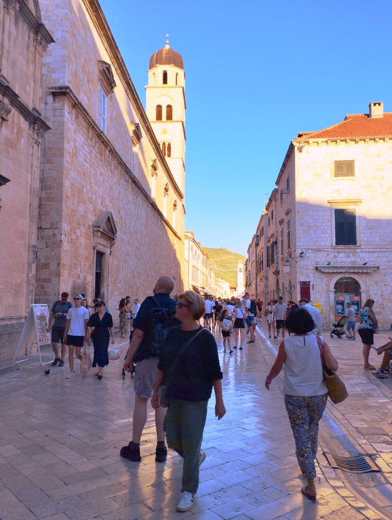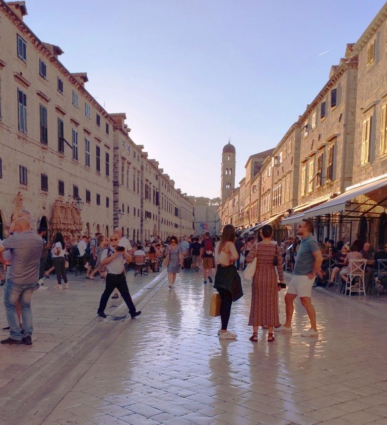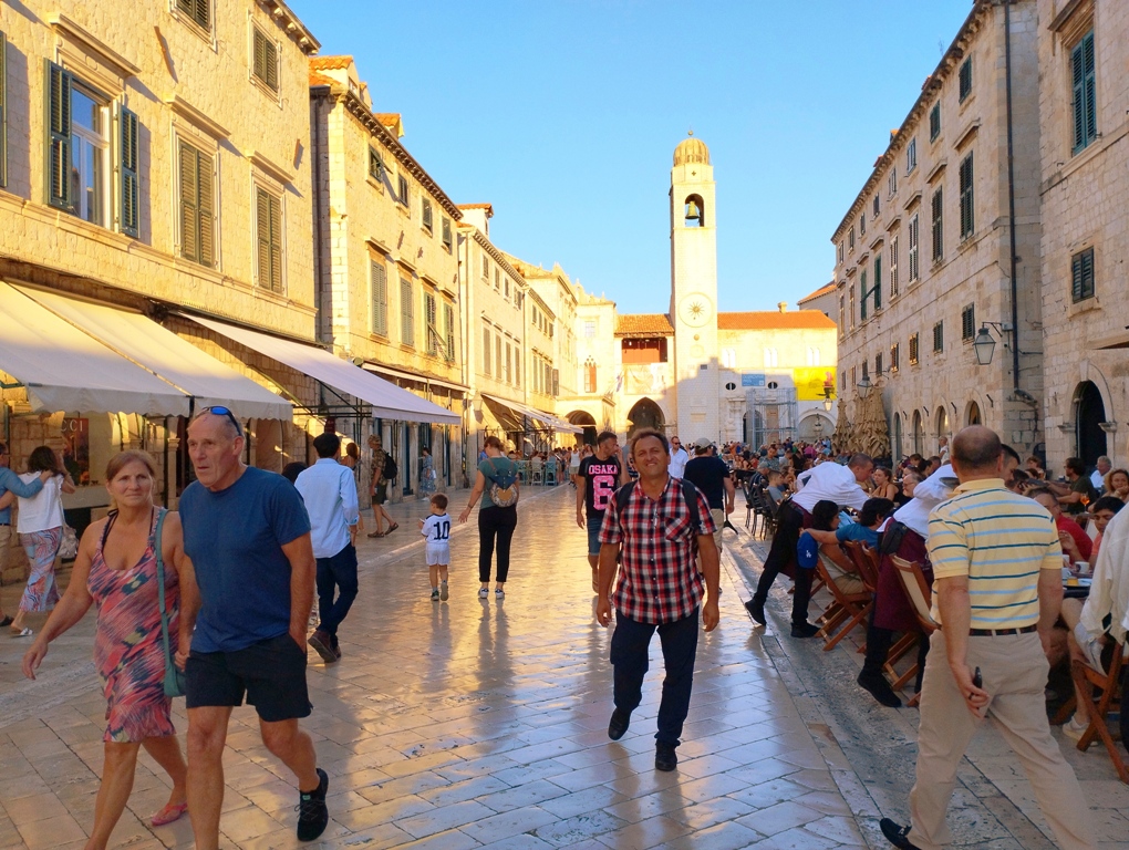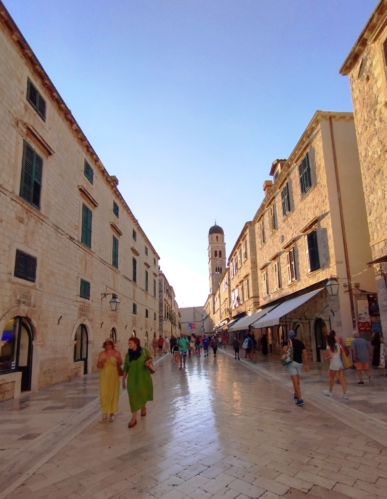 Prima mea oprire este la Poarta Pile, unde mă minunez de imensele ziduri care protejează orașul vechi. Intru în centrul vechi și ajung în Stradun, principala stradă pietonală, unde îmi arunc privirea către casele de piatră, cafenelele pitorești și magazinele pline de suveniruri. Mă las purtat de atmosfera vibrantă și aleg să vizitez câteva dintre cele mai iconice obiective turistice.