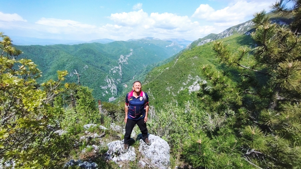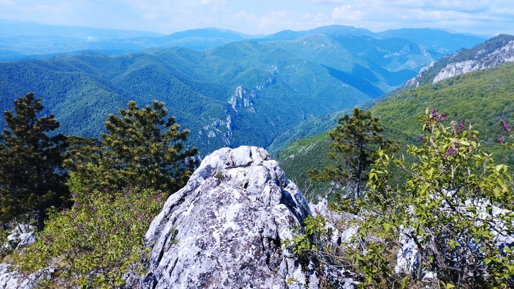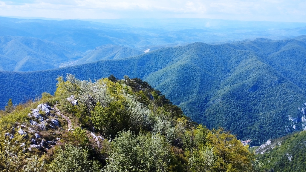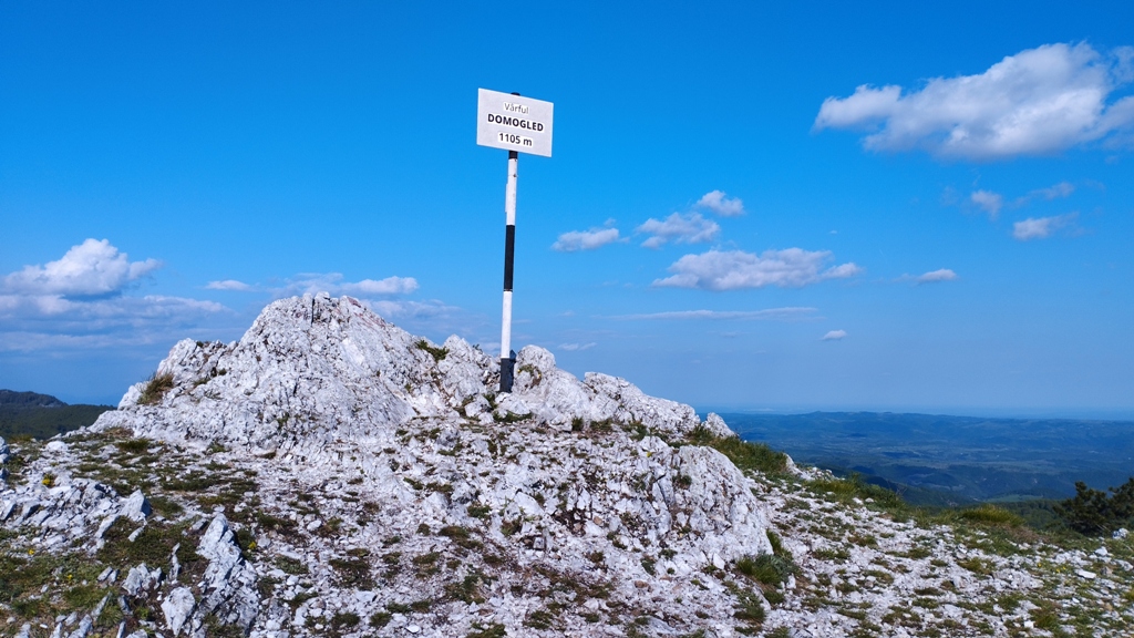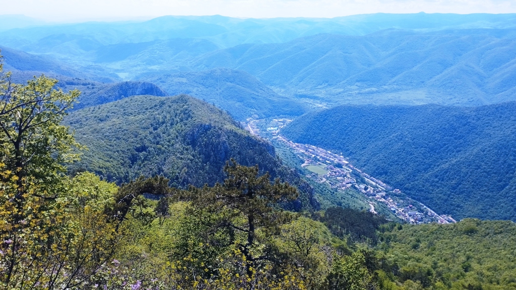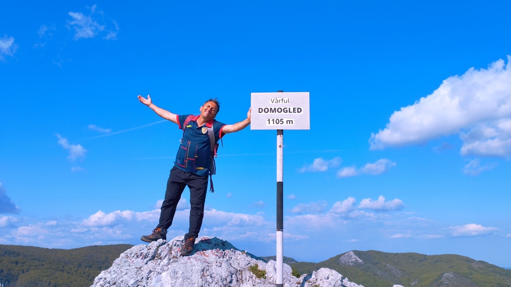 Ajung pe vârful Domogled, la 1105 metri, și mă opresc pentru câteva clipe. Respirația mi se domolește, iar privirea îmi alunecă peste întreaga Vale a Cernei. Sub mine, râul se strecoară printre munți, iar în depărtare, se conturează siluetele Munților Cernei, Godeanu și chiar, mai departe, ale Munților Retezat și Parâng. Mă las purtat de această panoramă magnifică, unde natura pare să se întindă la nesfârșit.