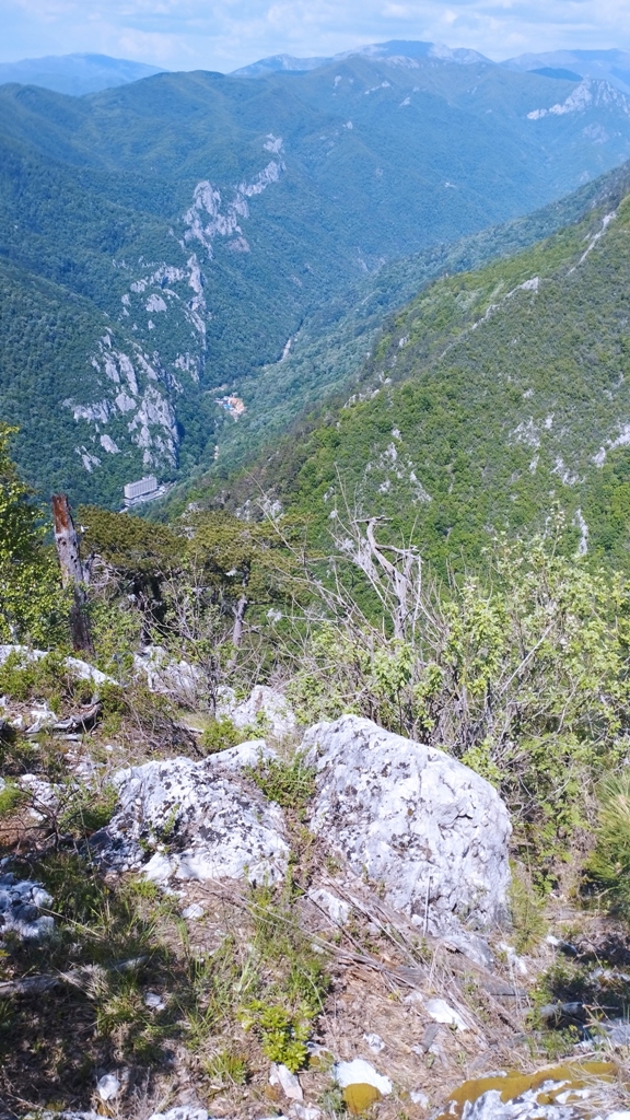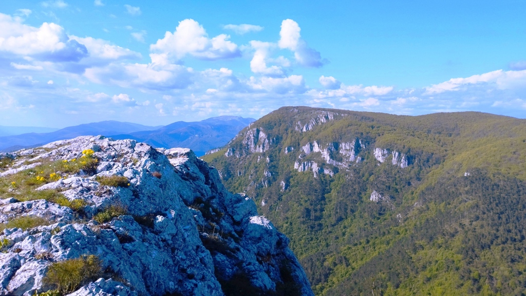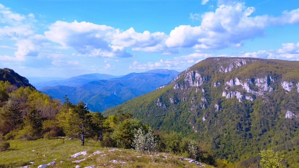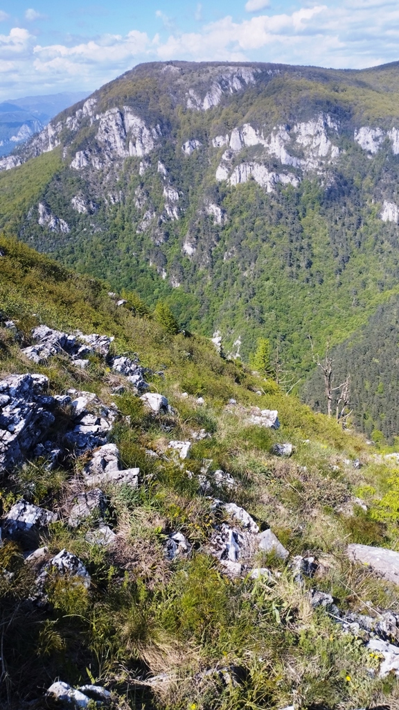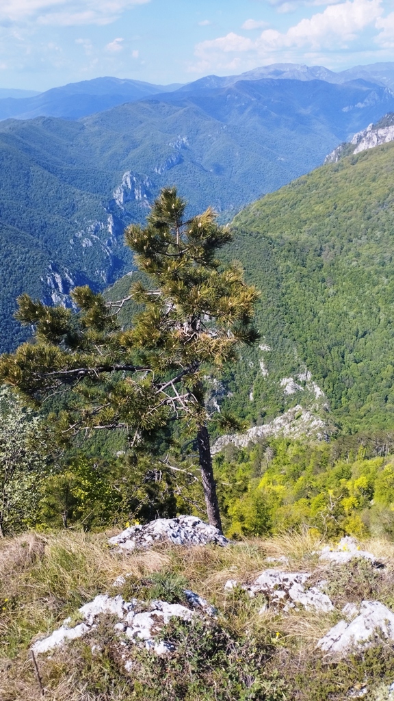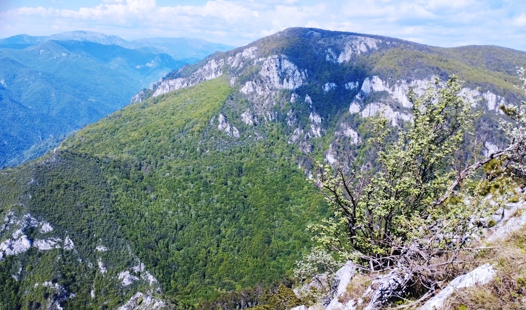 Ajung pe vârful Domogled, la 1105 metri, și mă opresc pentru câteva clipe. Respirația mi se domolește, iar privirea îmi alunecă peste întreaga Vale a Cernei. Sub mine, râul se strecoară printre munți, iar în depărtare, se conturează siluetele Munților Cernei, Godeanu și chiar, mai departe, ale Munților Retezat și Parâng. Mă las purtat de această panoramă magnifică, unde natura pare să se întindă la nesfârșit.