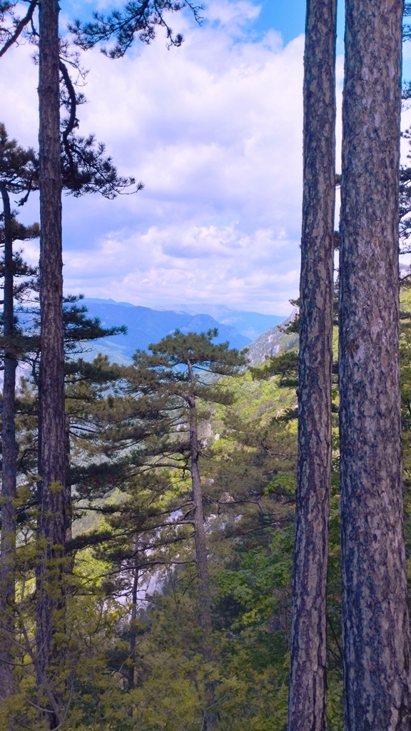 Pornesc la drum, lăsând în urmă forfota stațiunii, și încep urcarea spre Crucea Albă. Pădurea mă îmbrățișează cu aerul ei proaspăt, iar fiecare pas mă poartă mai adânc în liniștea muntelui. Parcul Național Domogled – Valea Cernei își dezvăluie treptat frumusețea. Printre arborii înalți, recunosc siluetele impunătoare ale pinului negru de Banat, dar și ale gorunului, fagului, teiului bănățean și frasinului. Acești copaci seculari veghează asupra traseului, dând pădurii un aer solemn.