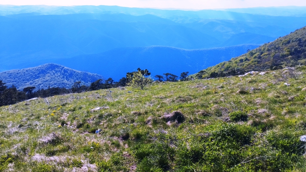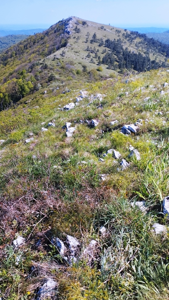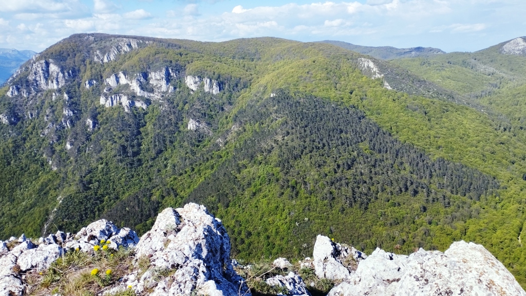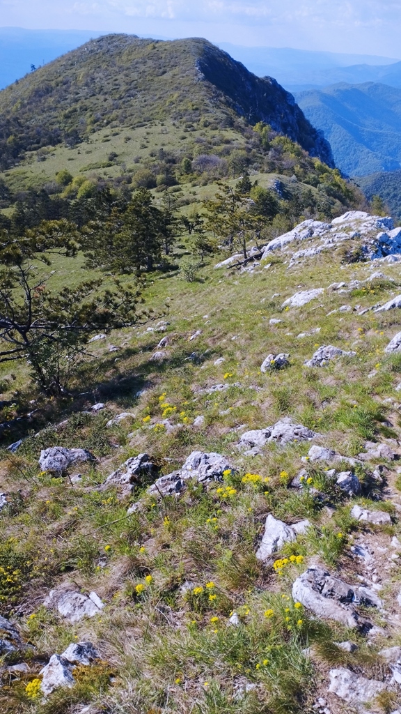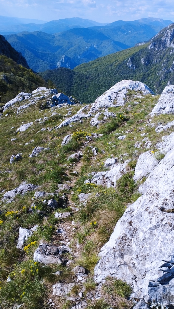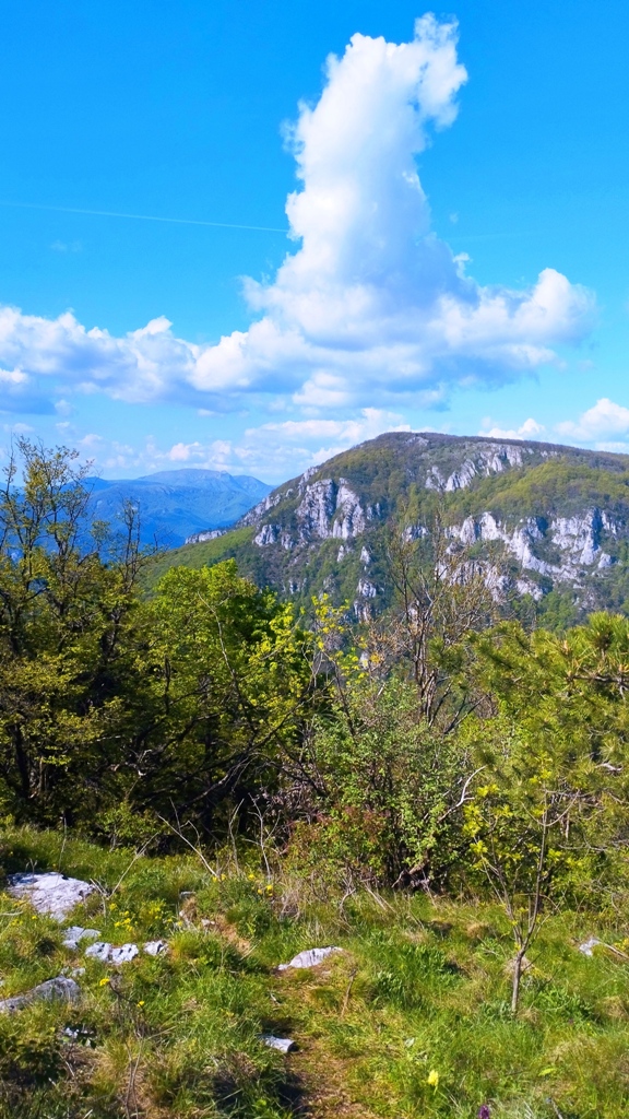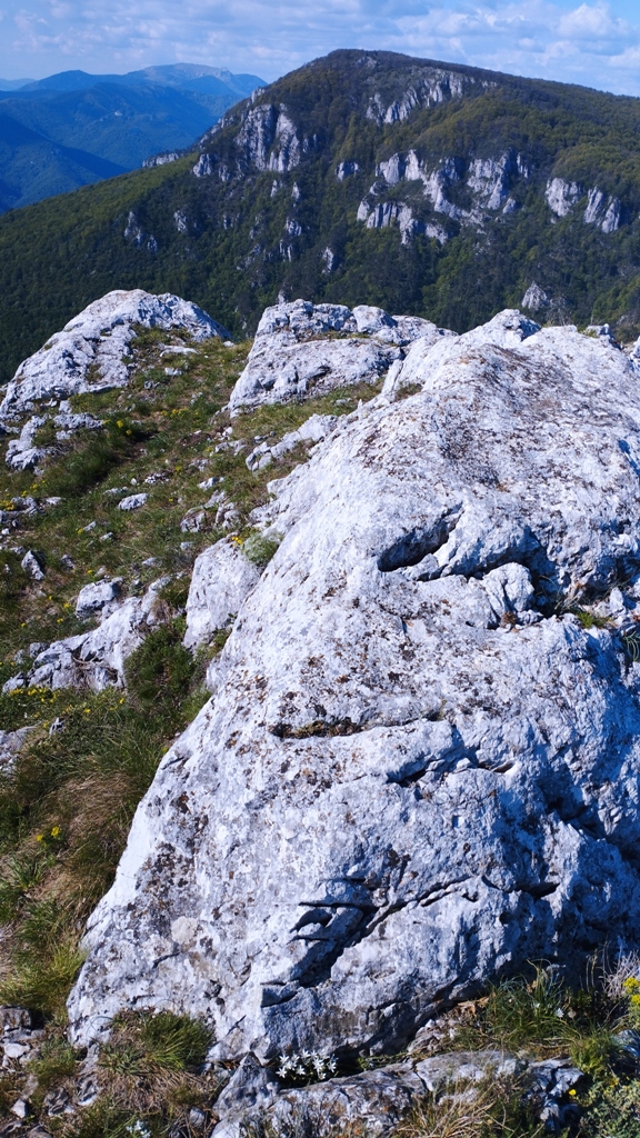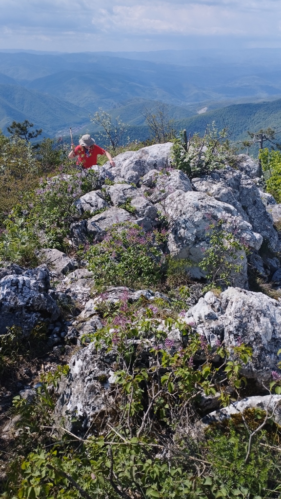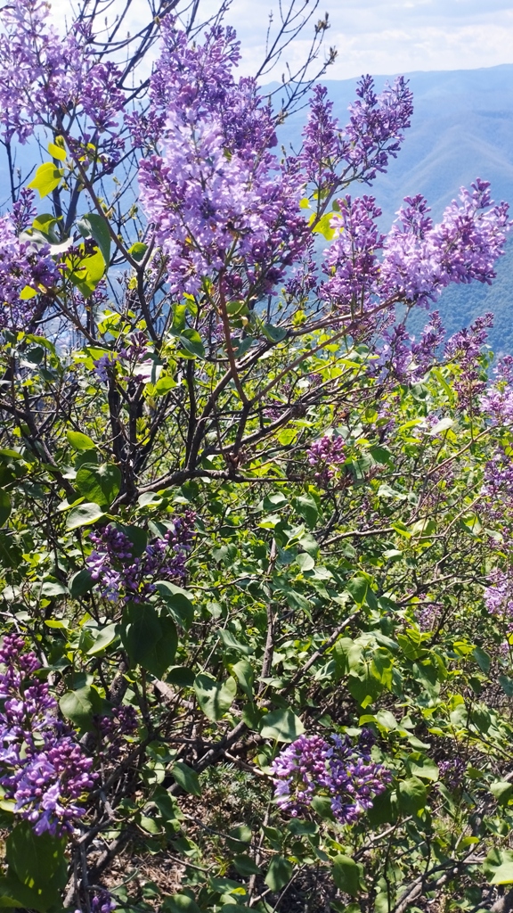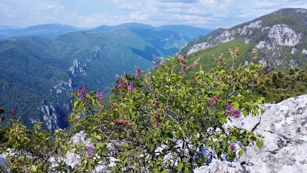 Luna mai își etalează splendoarea: liliacul este încă îmbobocit, dar în câteva zile va exploda într-un spectacol de culoare și parfum. Florile de munte își întind petalele spre soare, iar aerul este încărcat de miresmele pădurii. Urcarea devine mai abruptă, iar priveliștea ce se conturează îmi dă energie să continui.