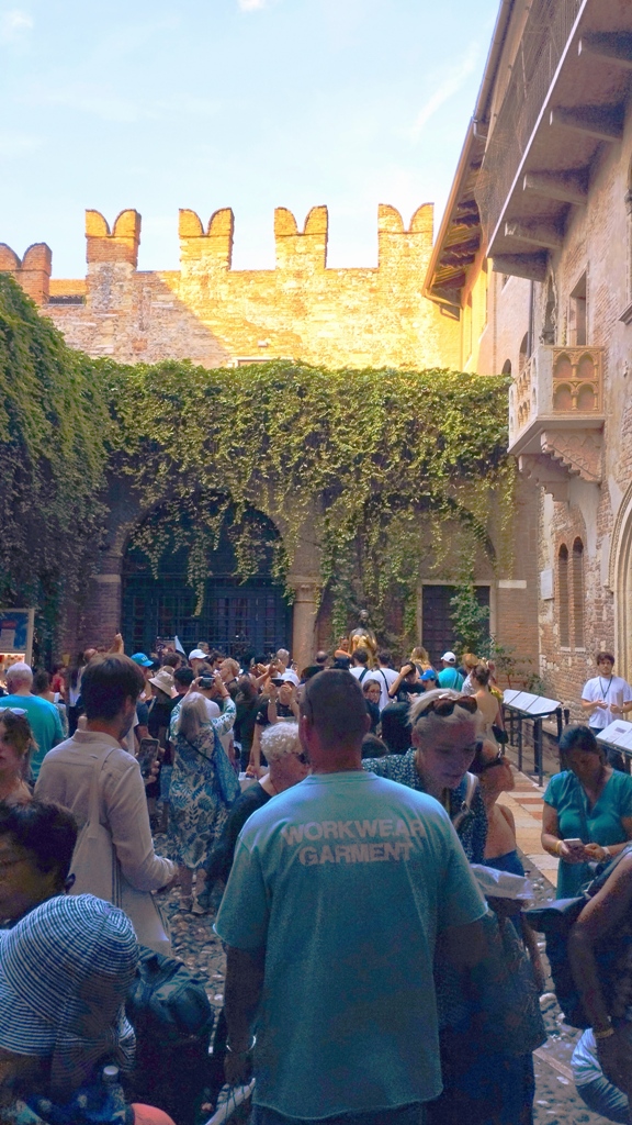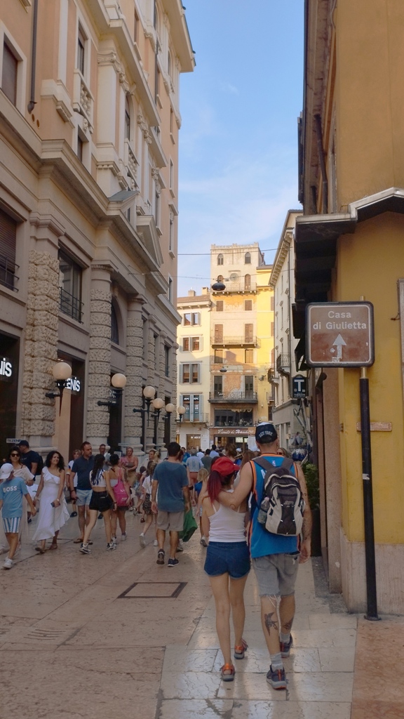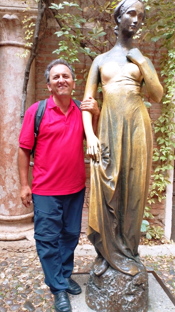 Dar nimic nu se compară cu momentul în care ajungi la Casa Julietei. Aici, în fața balconului celebru, turiștii se adună, fiecare dorind să surprindă o clipă din legenda iubirii nemuritoare. Statuia Julietei strălucește sub atingerea miilor de mâini care cred în norocul adus de acest gest. Mă opresc şi eu și privesc scena, un amestec de vis și realitate, unde Shakespeare a transformat Verona într-un simbol al iubirii absolute.