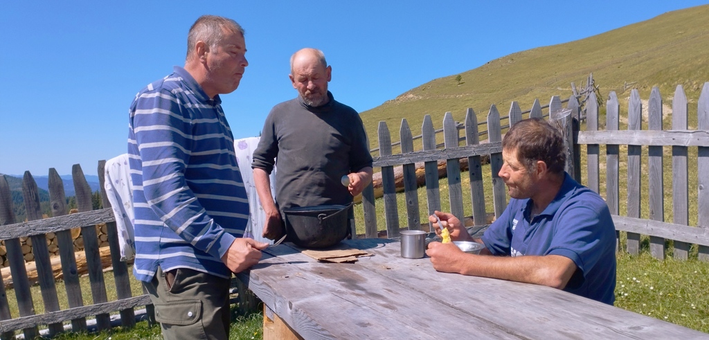 Și apoi, acel moment care nu se uită: revederea Stânei lui Nea Ilie. Am fost acolo acum patru ani, și acum am revenit. Nea Ilie nu mai e, dar am fost întâmpinat de doi băieți care duc mai departe ospitalitatea lui. M-au recunoscut, m-au invitat la masă, și mi-au oferit brânză, balmoș și povești. Dar cel mai emoționant a fost Sercan, câinele bătrân care m-a recunoscut imediat. A venit direct la mine, m-a privit și s-a așezat lângă bocanci, ca și cum n-ar fi trecut nici o zi de la ultima revedere. E bătrân acum, dar privirea lui e la fel de vie!