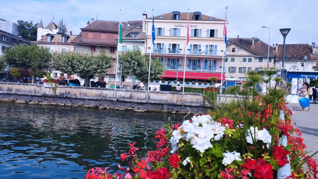 Într-o seară blândă de vară, cu aerul pur al Alpilor plutind ca o promisiune în jurul meu, pășesc în orașul Nyon, o bijuterie a Elveției, așezată cu grație pe malul lacului Leman. Vin dintr-o călătorie lungă, dar sufletul meu e mai treaz ca niciodată. Hostelul în care rămân peste noapte e elegant, cu ferestre largi care lasă să pătrundă lumina lunii și mirosul subtil al florilor alpine. Simt că Nyon mă primește cu brațele deschise, ca un vechi prieten care știe exact ce am nevoie!