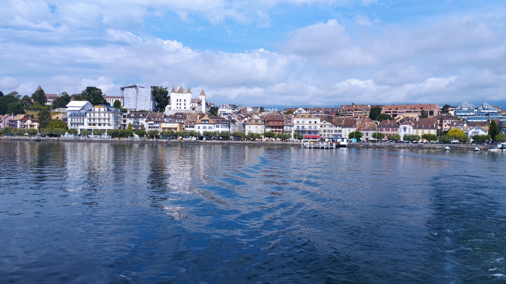 Dar adevărata magie începe când urc pe vapor. Lacul Leman, oglinda cerului și a munților, mă învăluie într-o liniște profundă. Pe măsură ce vaporul se îndepărtează de țărm, Nyon se transformă într-un tablou impresionist, castelele, turnurile, acoperișurile roșii, toate dansează în reflexia apei. E o croazieră scurtă, dar fiecare clipă pare eternă. Simt că sunt parte dintr-o poveste scrisă de natură și timp, iar eu sunt personajul principal.