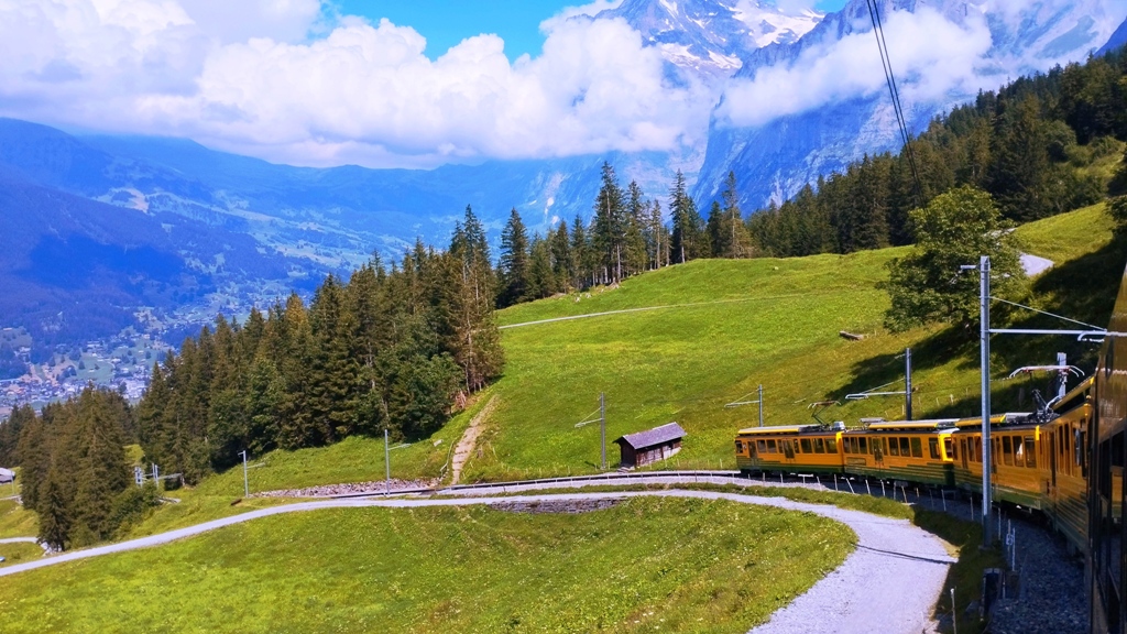 Sub cerul limpede al Alpilor, ziua se deschide ca o carte veche, cu pagini ce așteaptă să fie umplute cu sensuri noi și priveliști ce îți taie respirația. Am în față un drum legendar, o cale ferată elvețiană ce urcă spre cer, străbătând munți, văi, vise, speranțe… Trenul elvețian, precis ca un ceasornic și elegant ca o simfonie, pleacă din Interlaken și mă poartă prin Grindelwald și Eigergletscher, oprind în gări ce par desprinse ca dintr-un basm alpin.