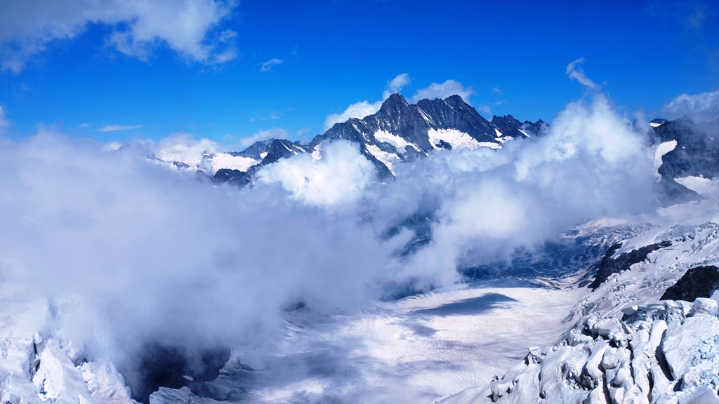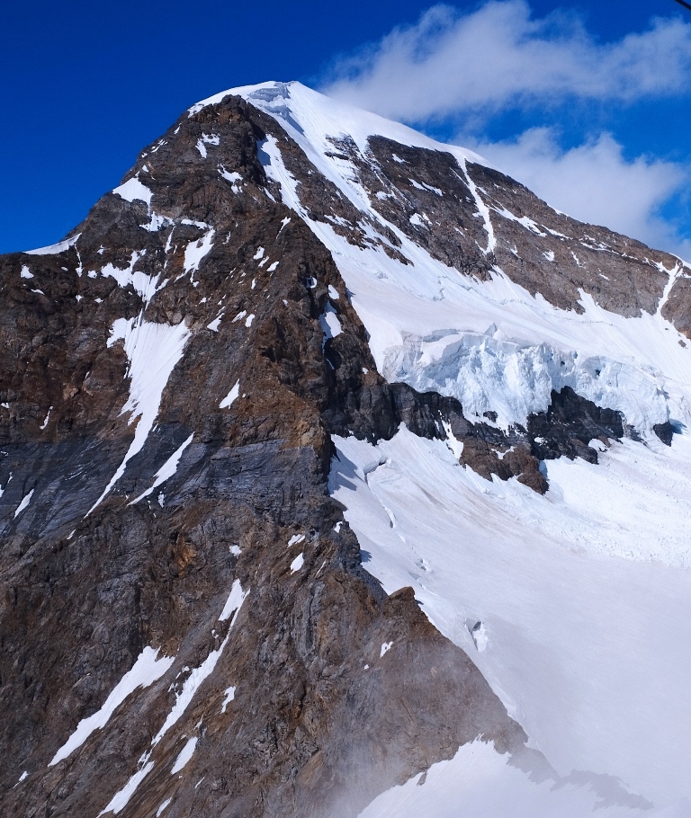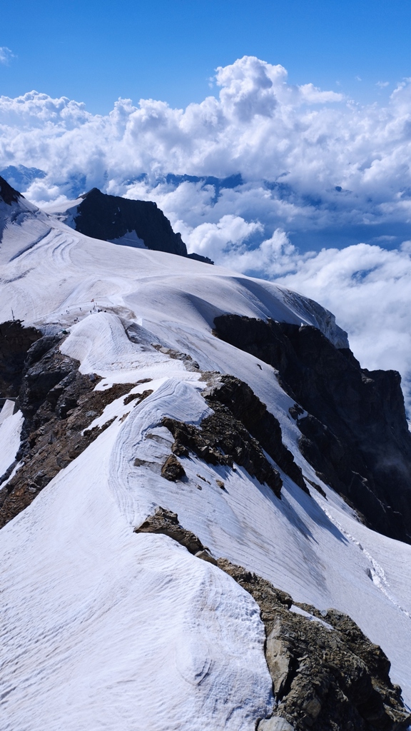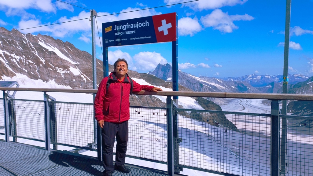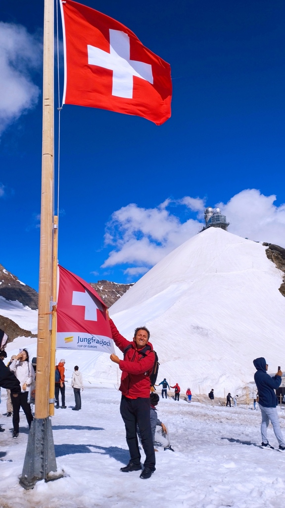 Ajung la Jungfraujoch, la 3454, și pășesc în cea mai înaltă gară din Europa, la 3571 metri. Aici, timpul pare suspendat. Vântul are o voce proprie, iar zăpada strălucește ca o mantie regală. În fața mea, Jungfrau, unul dintre patrumiarii legendari ai Alpilor, se înalță la 4158 metri, cu o demnitate ce mă face să mă simt mic și totodată parte din ceva măreț.