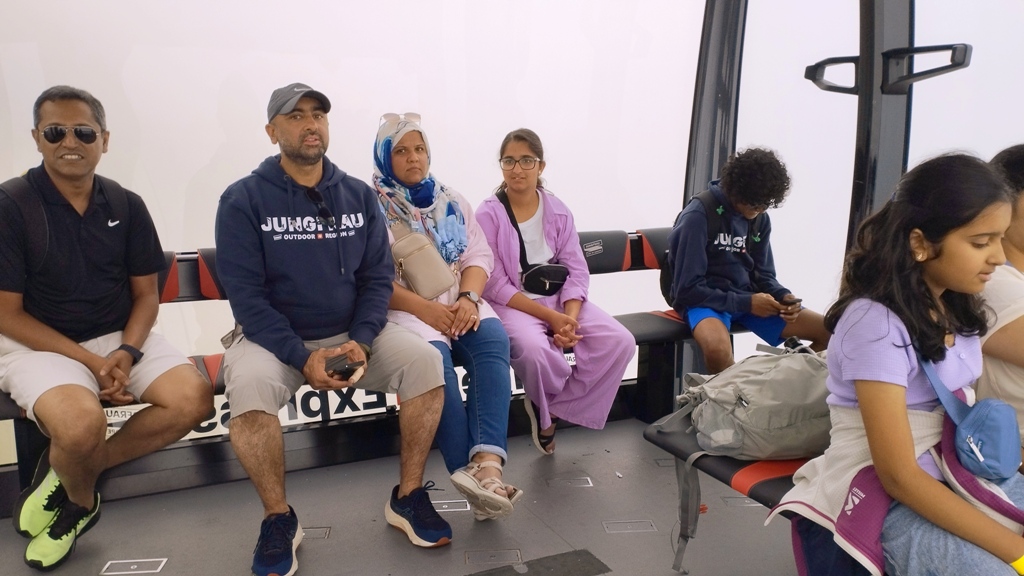 La întoarcere, o mică încurcătură mă face să schimb trenul cu o telecabină. Și ce bine că se întâmplă, așa! În acea cabină suspendată între cer și pământ, sunt înconjurat de un grup de turiști asiatici. Nu ne cunoaștem, dar muntele ne unește. Începem să cântăm împreună cântece de munte, fiecare în limba lui, dar cu aceeași vibrație. Este ca un cor universal al bucuriei, un moment de comuniune ce nu se poate descrie, ci doar trăi.