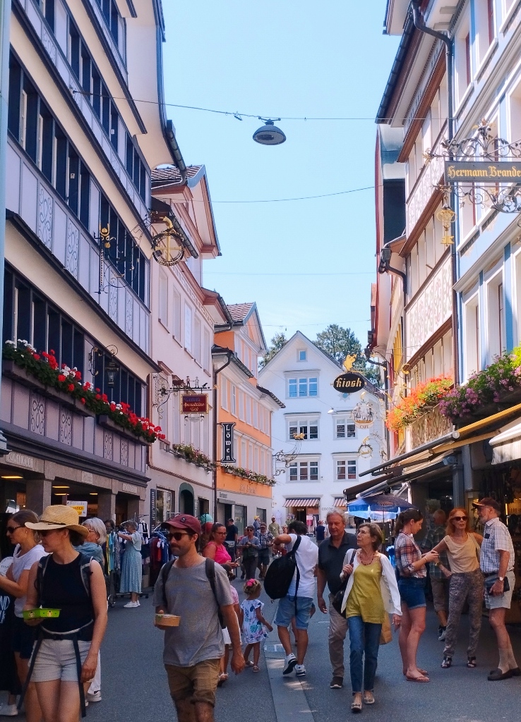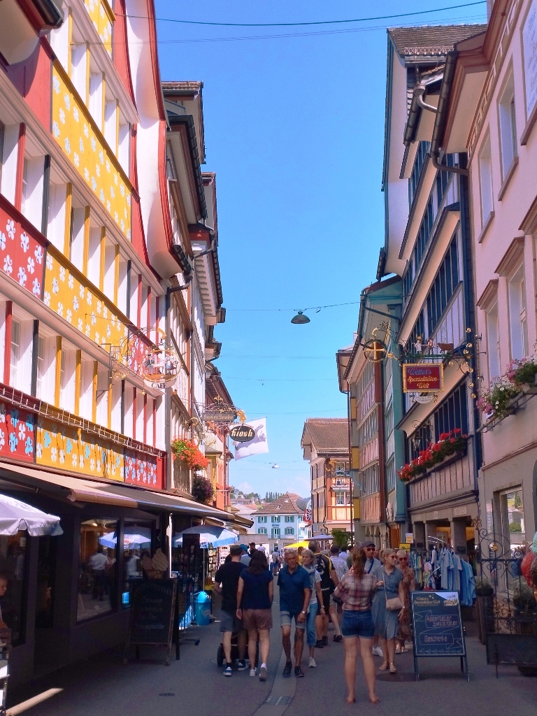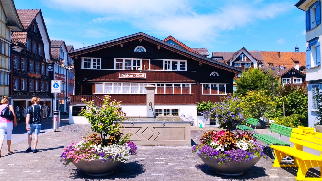 Appenzell nu se arată, ci se lasă descoperit. Străduțele lui înguste, casele pictate cu migală, vitrinele cu obiecte ce par scoase dintr-un alt timp, toate îmi vorbesc, dar nu în cuvinte. Le văd. Le trăiesc. Mă opresc des, nu pentru că obosesc, ci pentru că fiecare colț mă provoacă să rămân, să privesc, să simt!