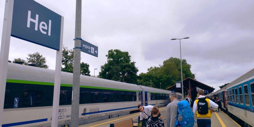 După o călătorie lungă cu trenul, străbătând Polonia de la sud la nord, ajung în orașul Hel. Ultima parte a drumului e chiar de-a dreptul spectaculoasă, trenul aleargă pe o fâșie îngustă de pământ, străjuită de păduri de pin care se întind până la țărm. Printre copaci se zăresc trasee turistice bine marcate, care invită la explorare și liniște. Peisajul se schimbă treptat, iar aerul devine tot mai rășinos, mai curat, mai viu!