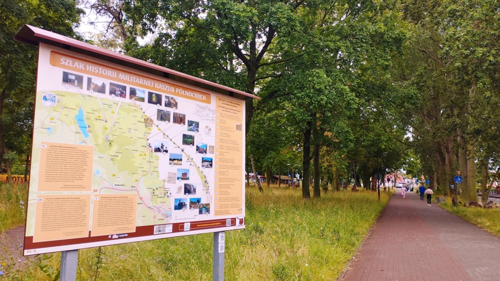 Știu că locul are și o istorie militară, apropierea de Kaliningrad, fortificațiile din pădure, muzeele care păstrează amintiri din vremuri mai tulburi. Dar astăzi, totul e liniștit. Doar câteva panouri mai amintesc de trecut.