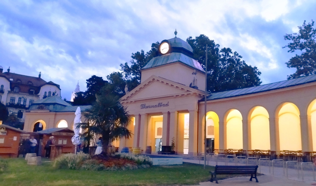 Bad Vöslau se află în regiunea Niederösterreich, la sud de Viena, înconjurat de dealuri domoale și păduri ce par desenate cu grijă. E un oraș mic, dar cu o eleganță naturală, ca o carte poștală care nu s-a demodat niciodată. Istoria lui e strâns legată de apele termale care l-au transformat, începând cu secolul al XIX-lea, într-o destinație de wellness pentru europeni în căutare de vindecare și tihnă. Aici s-a născut și faimoasa apă minerală Vöslauer, care poartă cu mândrie numele orașului și care mi-a fost oferită cu zâmbet într-un mic local de familie.