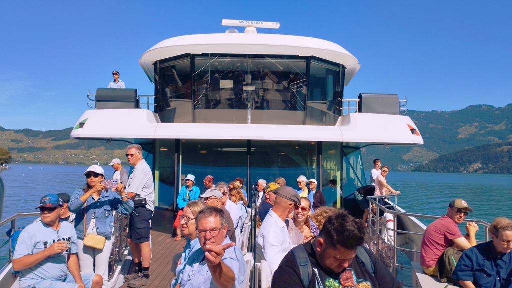Am ales să pornesc cu vaporul din Lucerna, alegând traseul lung spre Flüelen, dar m-am oprit la Treib, atras de promisiunea unei priveliști care nu se uită. De acolo, funicularul m-a purtat spre Seelisberg, un balcon natural de unde lacul se vede ca o acuarelă vie, cu nuanțe care se schimbă odată cu lumina. Acolo, în liniștea aceea suspendată între cer și apă, am simțit că nu mai contează nici ora, nici traseul, doar clipa!