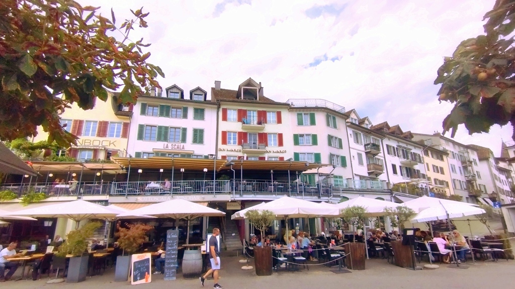 Mă plimb prin centrul vechi, unde străduțele înguste și clădirile medievale îmi dau senzația că pășesc într-un alt timp. Castelul, odinioară gazda Muzeului Polonez, veghează orașul cu aceeași eleganță tăcută. Chiar dacă muzeul e temporar închis sau pe cale de a fi mutat, locul păstrează o vibrație aparte, ca o amintire care încă respiră printre ziduri. Apoi mă las purtat de pași spre promenada lacului, unde totul pare să respire calm. Văd și podul de lemn, cel mai lung din Elveția, care leagă Rapperswil de Pfäffikon, o punte între lumi și epoci.
