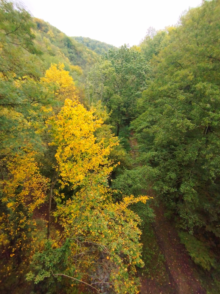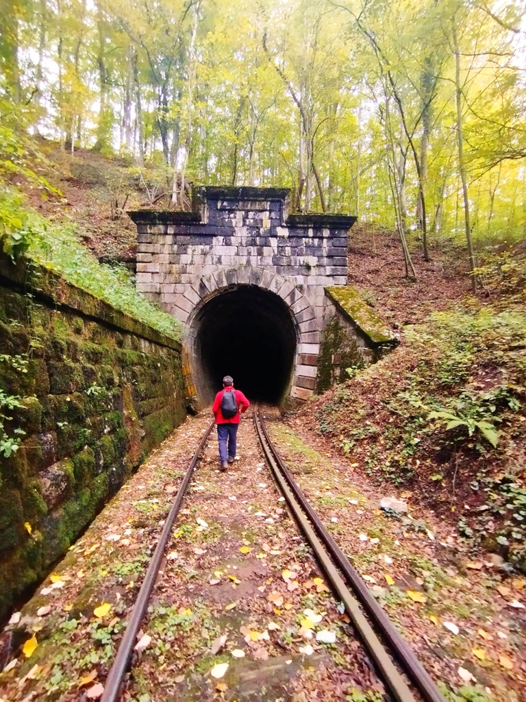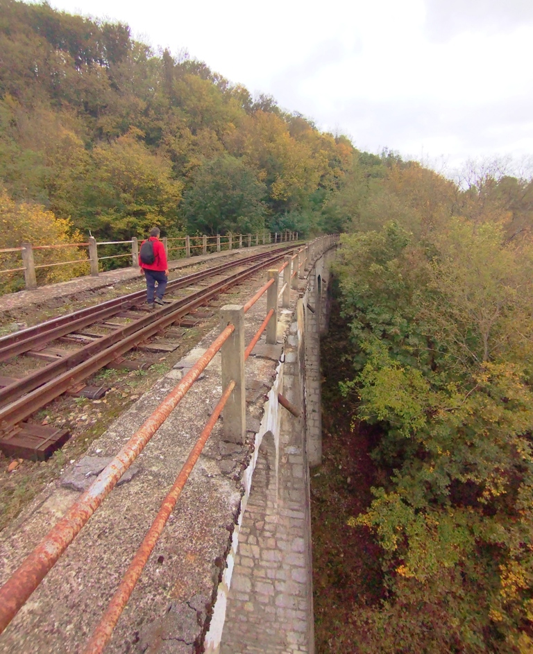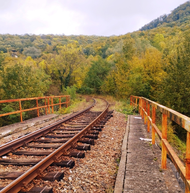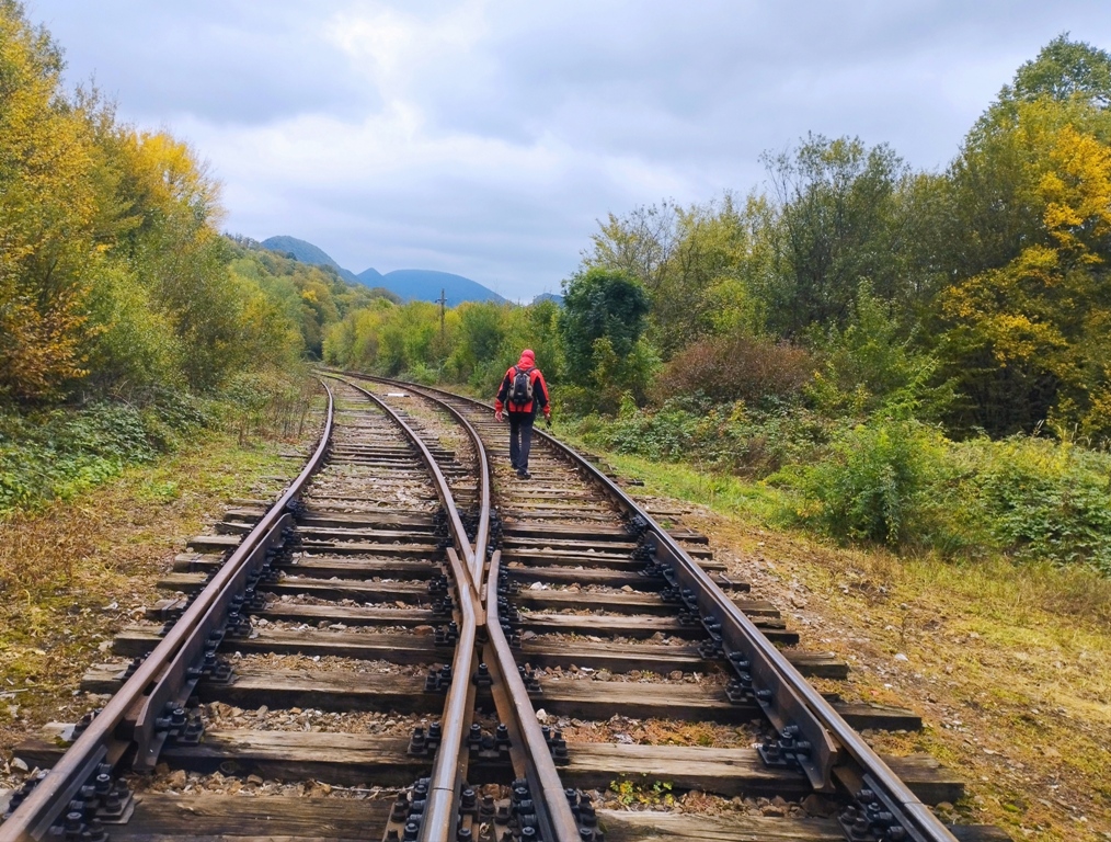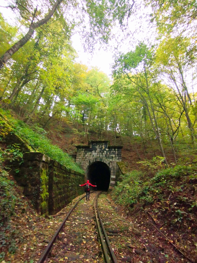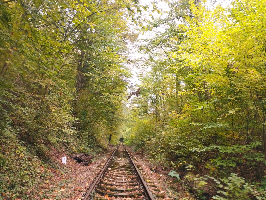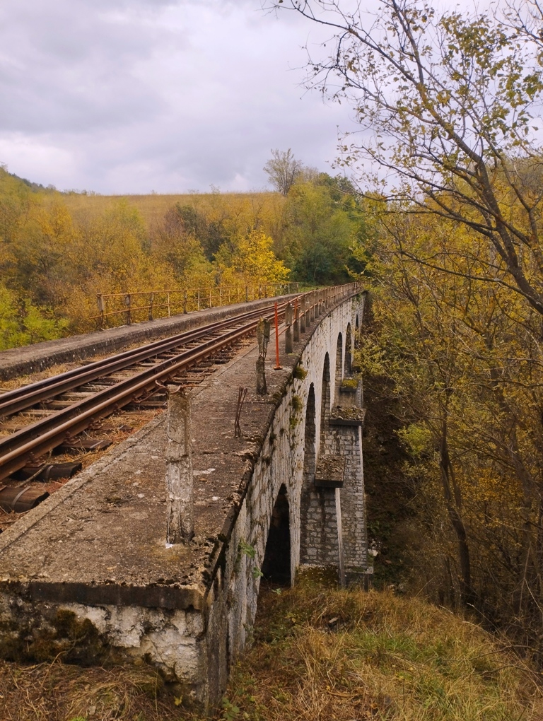 Peisajul de toamnă e altfel. Mai tăcut. Mai grav. Frunzele nu mai dansează, ci cad cu eleganță. Viaductele par mai bătrâne, tunelurile mai adânci. Am pășit pe lângă linia care azi abia mai respiră, cu trenuri rare, cu viteză de 20 km/h, cu șine care scârțâie a nostalgie. Dar frumusețea e acolo. În fiecare cotitură, în fiecare stâncă tăiată de mâna omului, în fiecare ecou ce se pierde în pădure