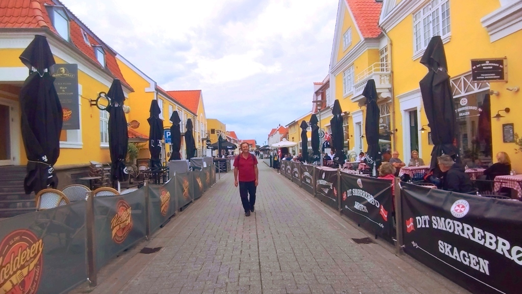 Ajung în Skagen într-o dimineață cu o liniște ce se simte încă de la gară. Nu reușesc să merg la punctul exact unde se întâlnesc mările, nu găsesc transport adecvat, dar orașul mă primește cu brațele deschise. Și ce primire! Case galbene cu acoperișuri roșii, străzi liniștite, oameni ce zâmbesc fără motiv. Mă plimb fără plan, doar cu chef de a simți.