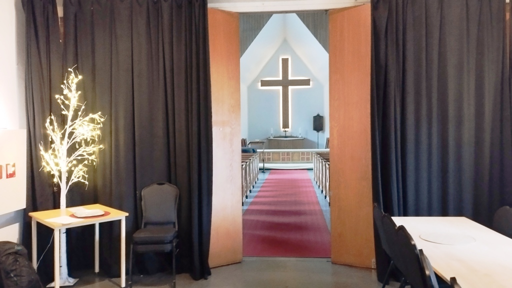 M-am cazat într-un hostel cum nu mai întâlnisem: o biserică transformată într-un loc de odihnă. Receptia și sala de mese într-o parte, altarul în cealaltă, iar camerele, la subsol, unde liniștea era absolută. Am dormit sub altar, cu gândul că poate chiar tăcerea nordului mă veghează.
