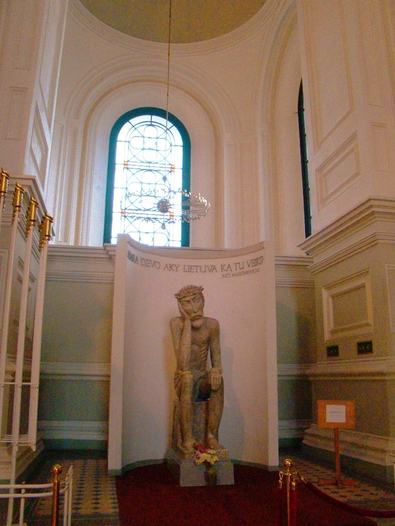 Mă plimb prin centrul vechi și ajung la Catedrala Bazilică a Apostolilor Petru și Pavel, cea mai mare biserică gotică din Lituania. Interiorul e impresionant cu altare baroce, capele decorate cu sculpturi și picturi, opere de artă care dau senzația că fiecare colț are o poveste de spus. Încerc să privesc solemn, dar nu pot să nu zâmbesc când îmi imaginez că îngerii pictați pe pereți ar putea să-mi șoptească: ,,Bine ai venit, dar nu uita să te bucuri de viață.”