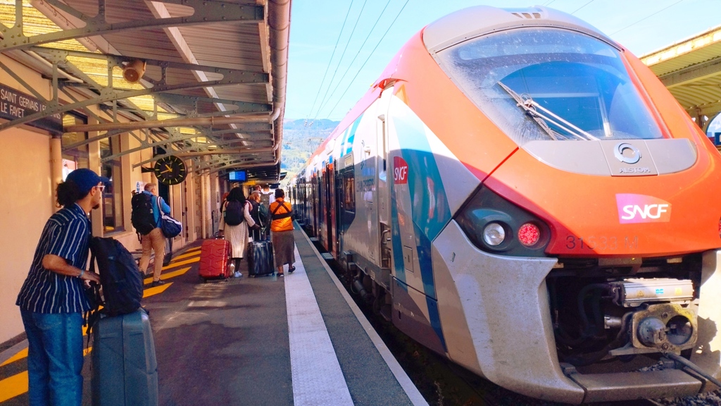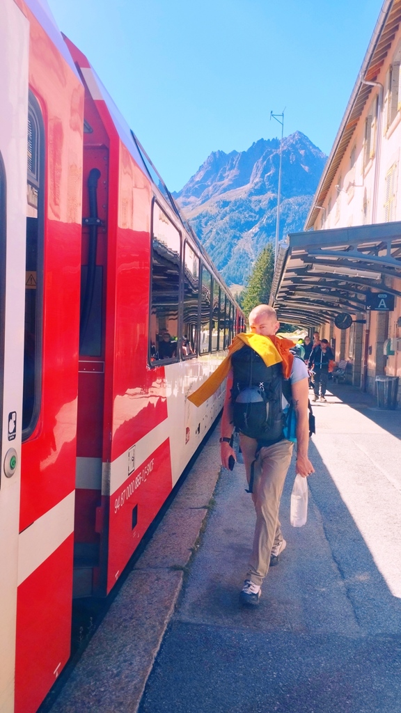 Totul începe într-o dimineață frumoasă, când pornesc din micuțul orășel elvețian Martigny și mă urc în Mont‑Blanc Express, un trenulet privat cochet, lustruit parcă pentru o paradă montană, îndreptându-mă astfel spre Franța, mai precis spre Chamonix Mont‑Blanc și mai departe spre Saint‑Gervains, într-un adevărat voiaj prin Alpi.