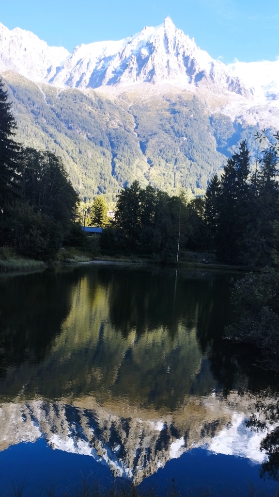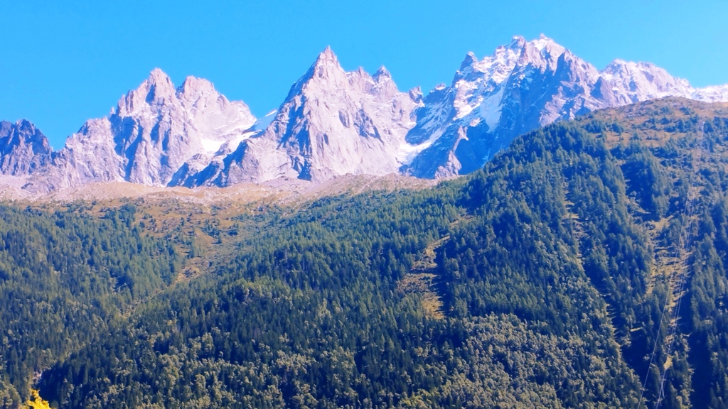 După Vallorcine, trenul începe să coboare ușor spre Chamonix Mont‑Blanc, orașul care pare să trăiască într-o altă dimensiune. Acolo, munții nu sunt doar munți, sunt zei de piatră. Aiguille du Midi se ridică în fața mea ca o suliță înfiptă în cer, iar gândul că telecabina urcă până la 3842 de metri îmi dă fiori și multă emoție.