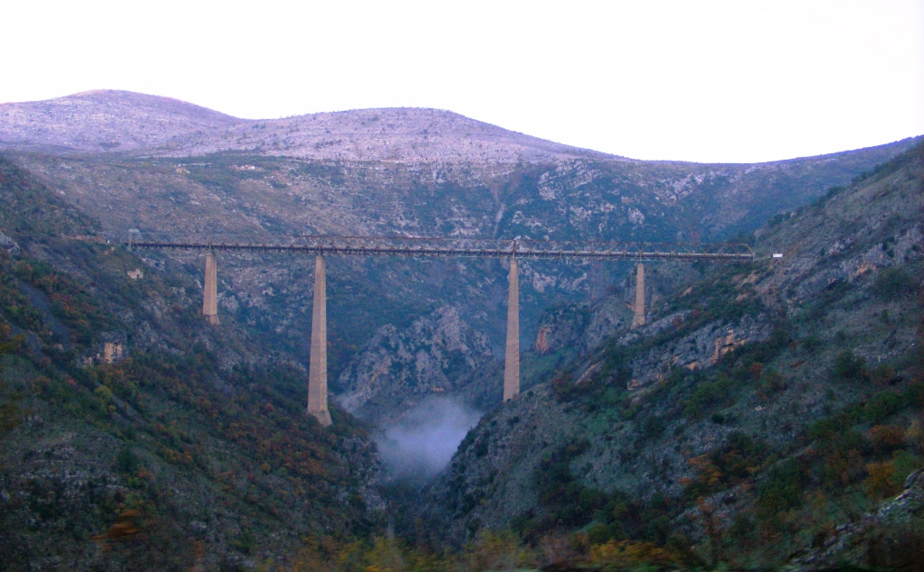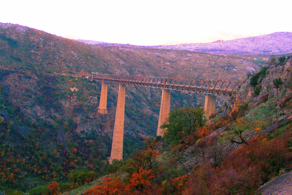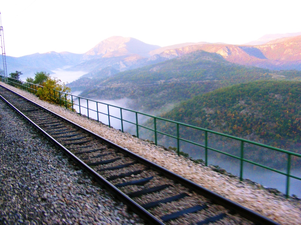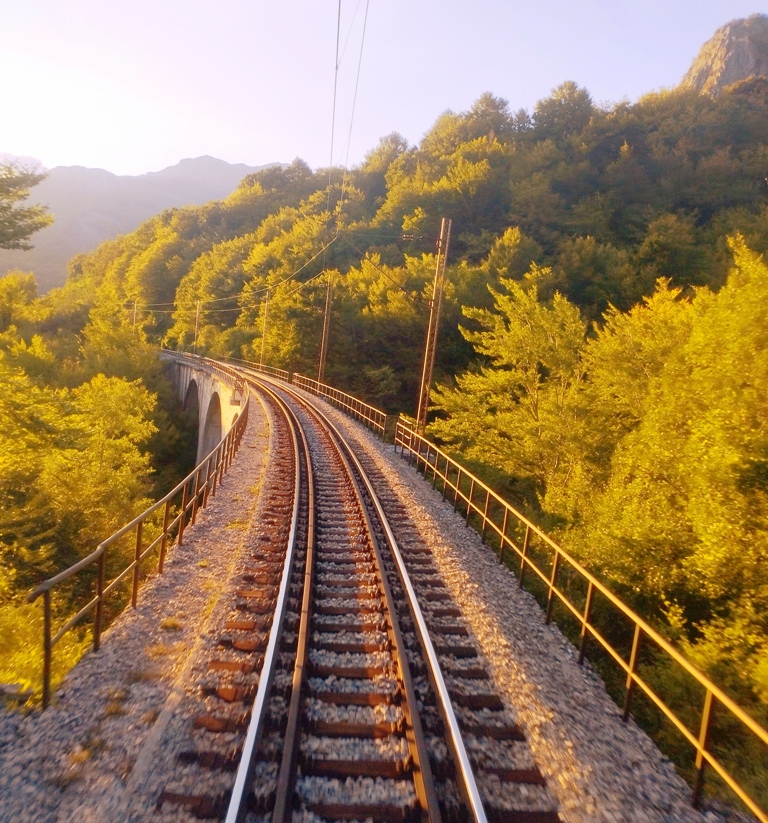 Construită în condiții extreme, prin munți abrupți, văi adânci și stânci care sfidează logica, această cale ferată este o capodoperă inginerească. Viaducte amețitoare, tuneluri nesfârșite și poduri suspendate între cer și pământ se succed într-un ritm ce nu îți dă voie să respiri. E o linie care nu doar traversează Balcanii, ci ți se deschide în față ca o carte de povești scrisă cu piatră, apă și nori.