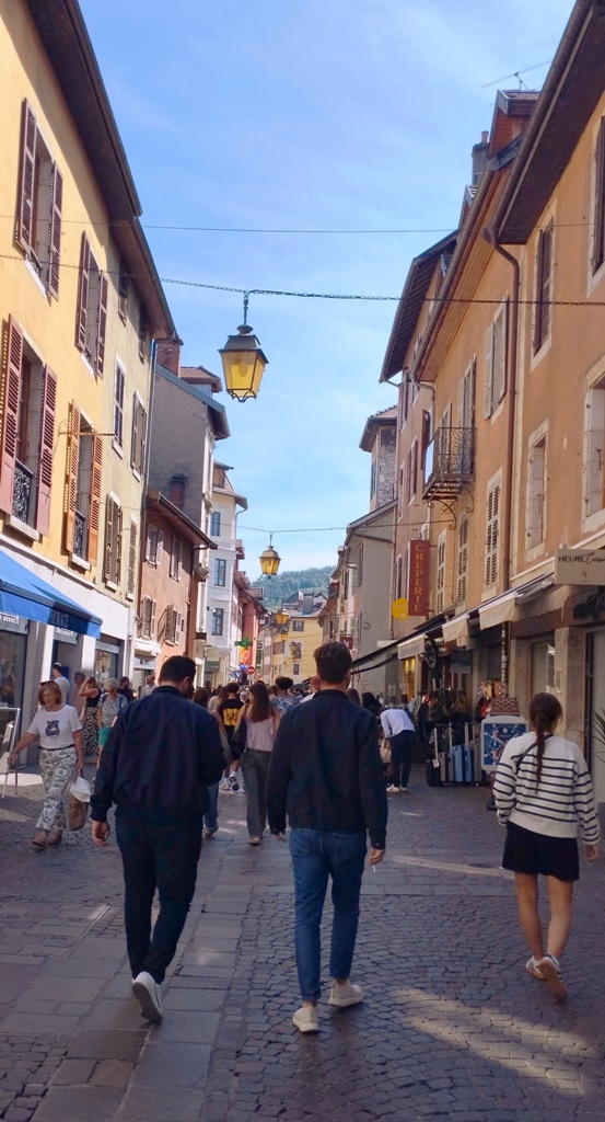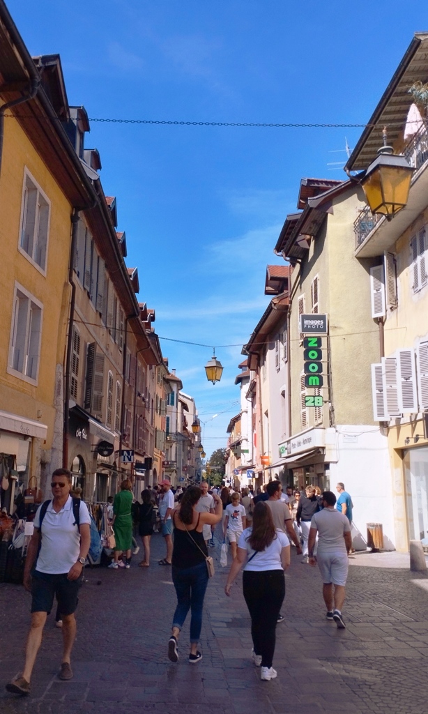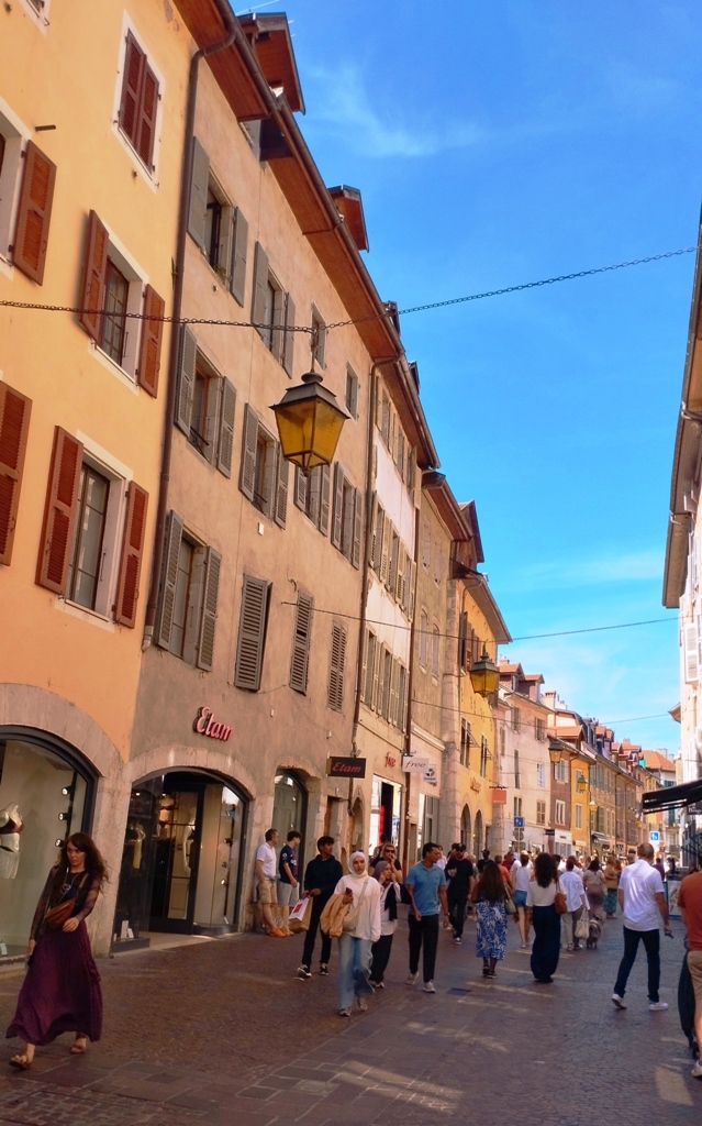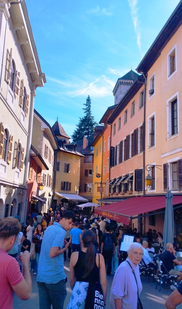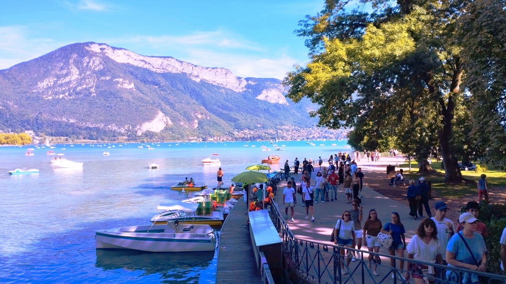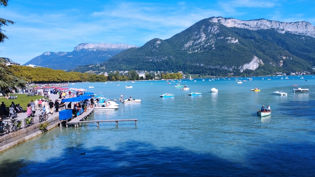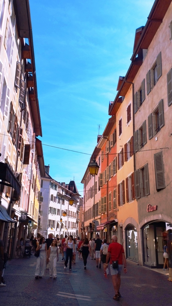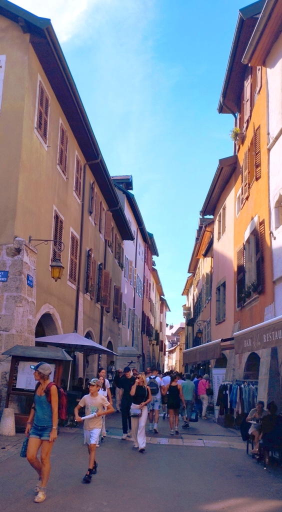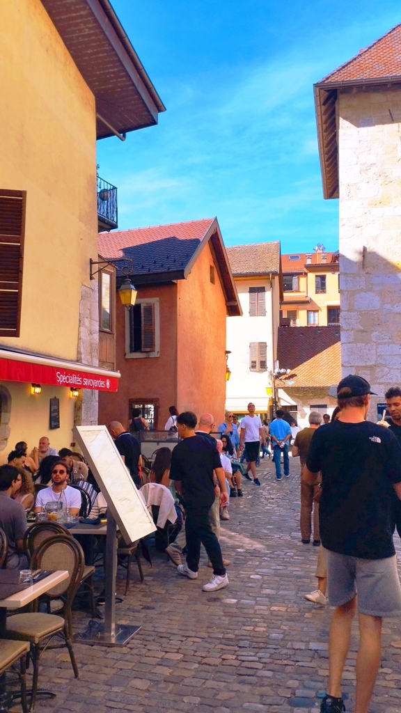 Iar în Annecy… ei bine, Annecy m-a surprins. Orașul ăsta are un farmec care nu se explică, se simte. E așezat strategic în peisajul turistic francez, între lacul acela incredibil de albastru și Alpii care stau de pază ca niște bodyguarzi eleganți. Are istorie cât să umpli trei manuale: romani, conti, duci, Savoia…