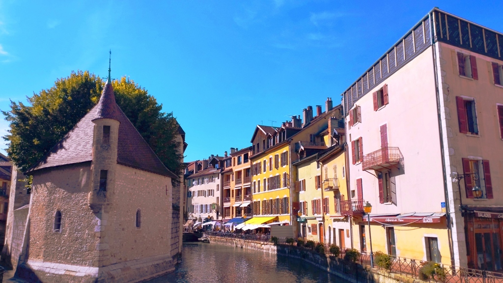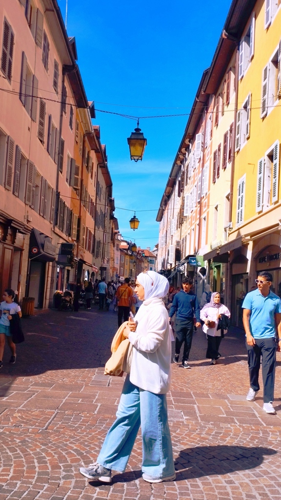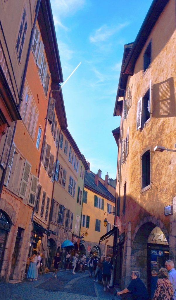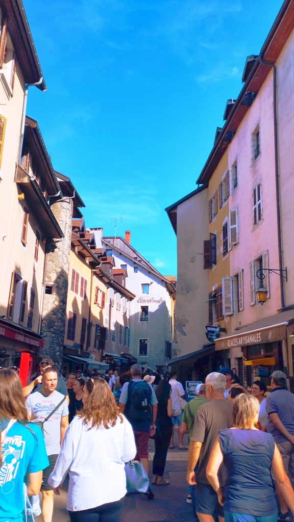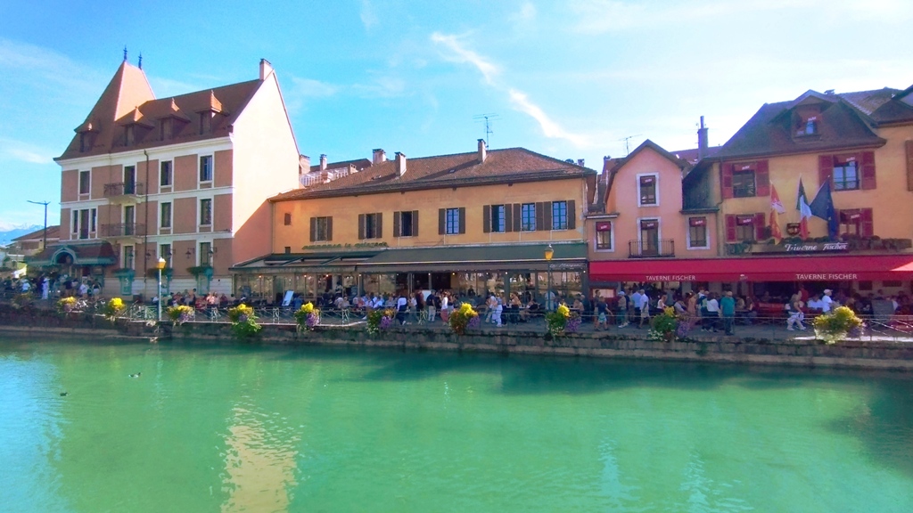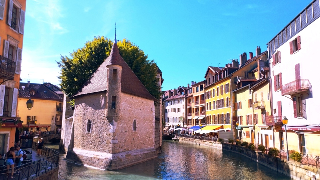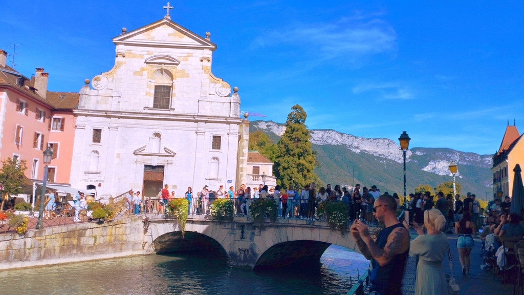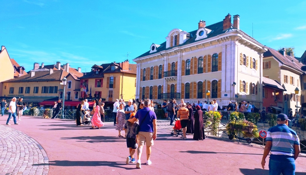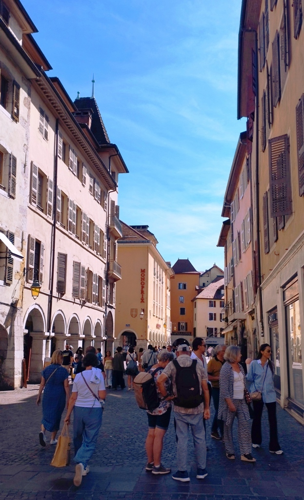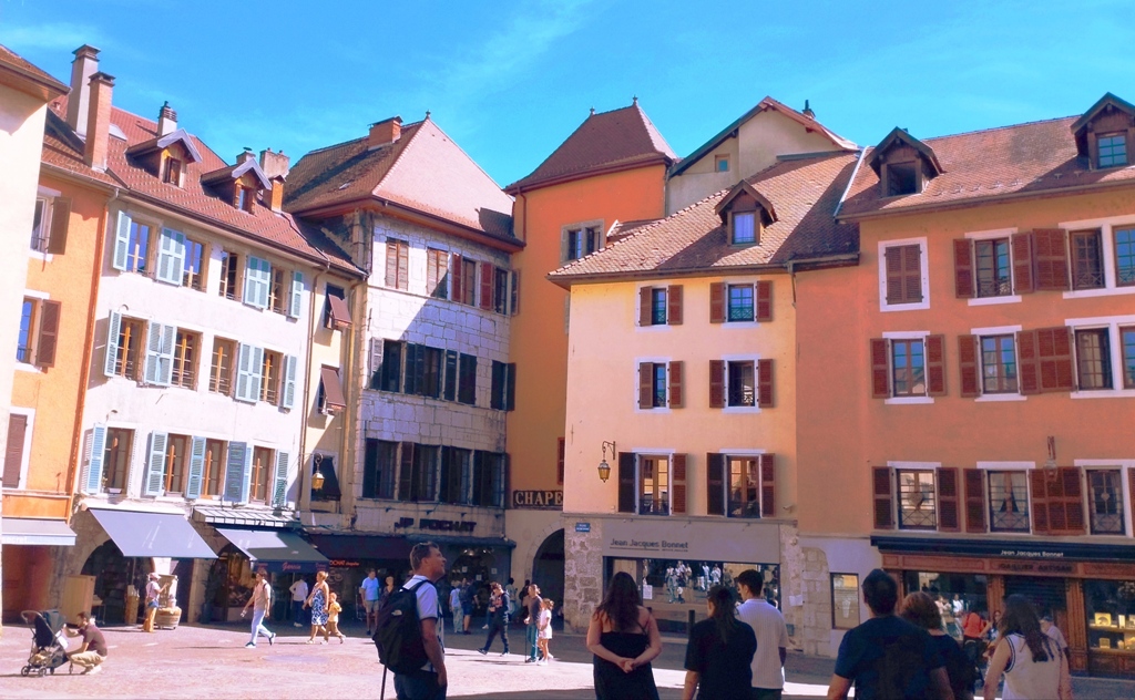 Iar în Annecy… ei bine, Annecy m-a surprins. Orașul ăsta are un farmec care nu se explică, se simte. E așezat strategic în peisajul turistic francez, între lacul acela incredibil de albastru și Alpii care stau de pază ca niște bodyguarzi eleganți. Are istorie cât să umpli trei manuale: romani, conti, duci, Savoia…