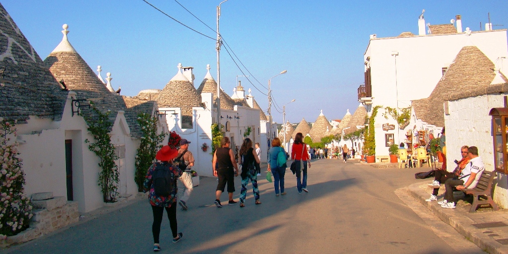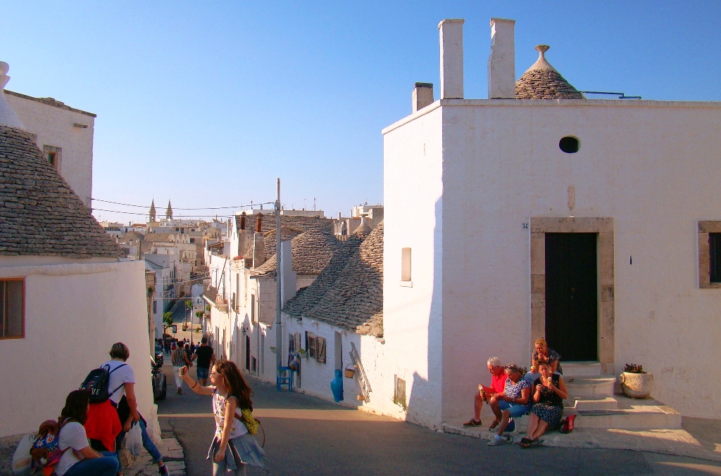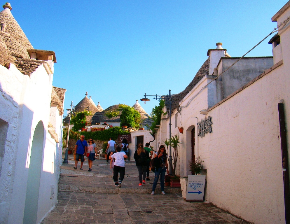 Când am coborât din trenul care m-a adus din Bari, din prima clipă, am avut senzaţia că pătrund într-un univers complet diferit de tot cea-ce cunoscusem până atunci. Și nu exagerez deloc. Alberobello nu e un oraș, e o colecție de ciuperci din piatră, aranjate cu o precizie care te face să crezi că cineva, undeva, a avut prea mult timp liber și o imaginație scăpată de sub control.