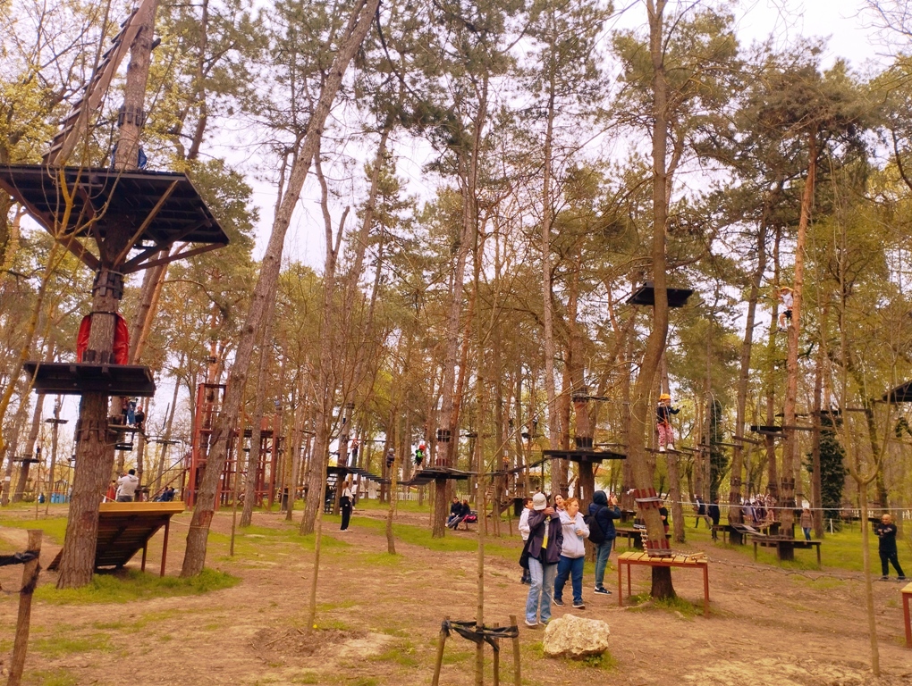 Am reușit totuși să ajung în Parcul de Aventură Comana, un loc care m-a surprins în cel mai plăcut mod. Poduri suspendate, trasee prin copaci, aer curat, râsete de copii și adulți deopotrivă. Un contrast superb între liniștea mănăstirii și energia parcului. A fost ca o gură de aer proaspăt, o pauză de bucurie într-o zi deja încărcată de emoție.