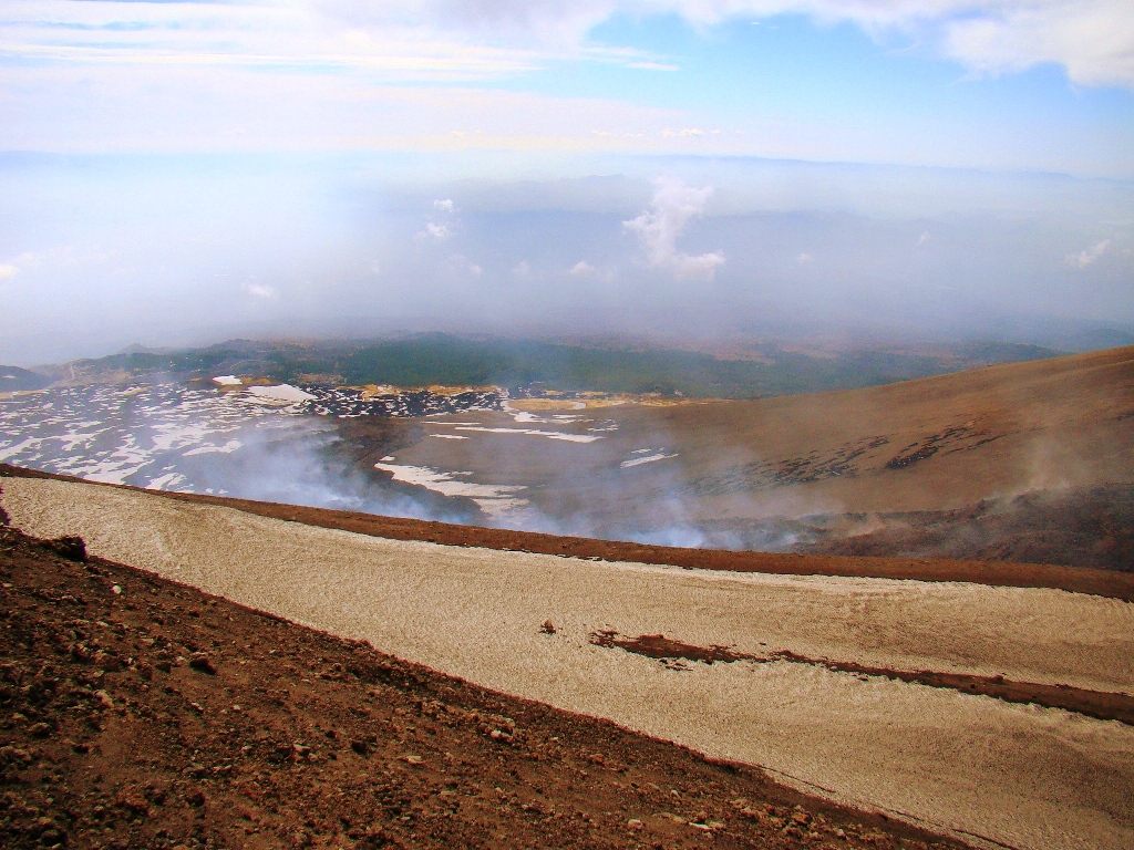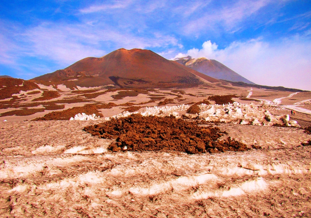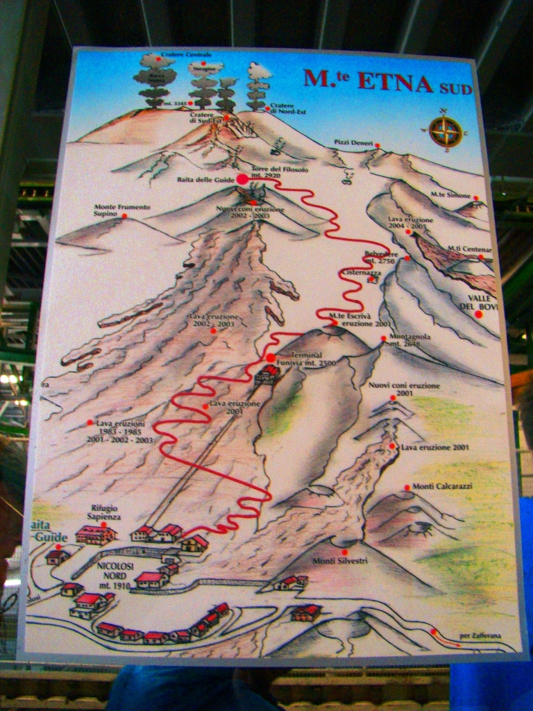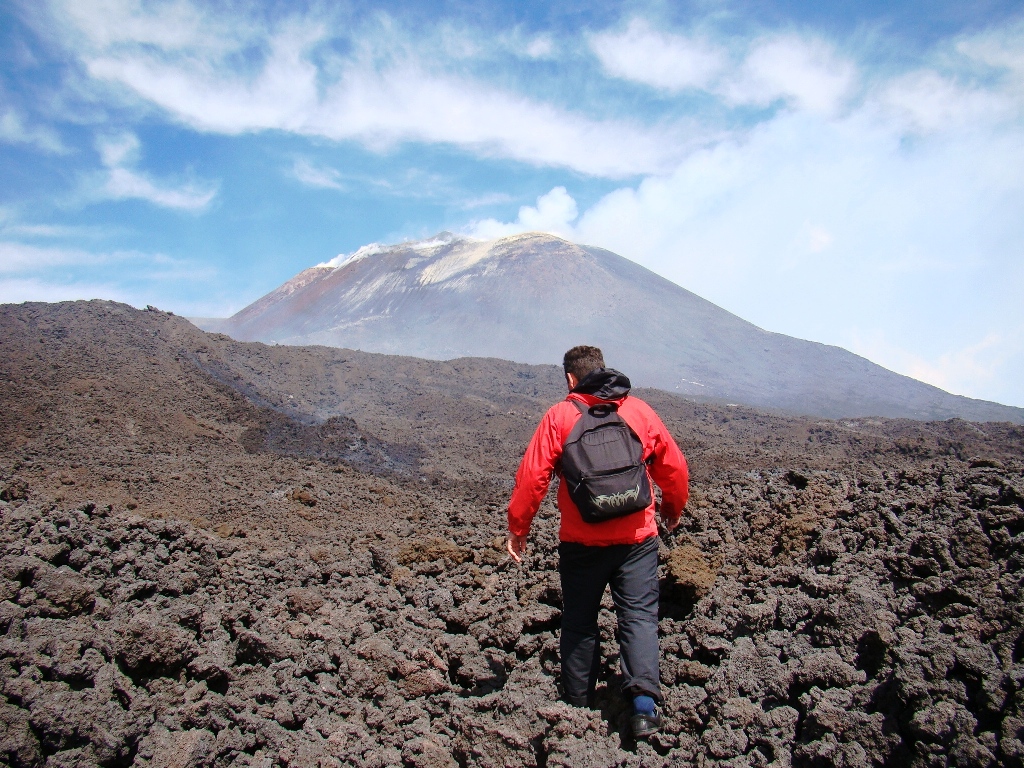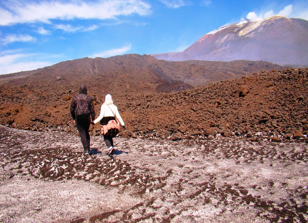 Așa că într-o dimineață, dintr-un alt timp, pornesc din autogara Piazza Giovanni XXIII, aflată lângă gara Catania Centrale, cu singurul autobuz care urcă spre Etna, până la Rifugio Sapienza, la peste 1900 de metri altitudine. De acolo iau telecabina până la 2500 de metri, iar mai departe… pe jos. Sau cu niște mașini de teren care costă cât o vacanță în Grecia. Așa că aleg varianta clasică: mersul pe jos. Și nu doar eu, căci toți fac cam la fel.