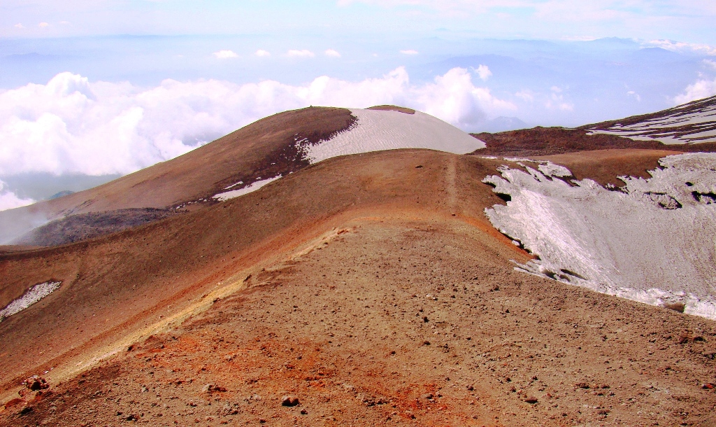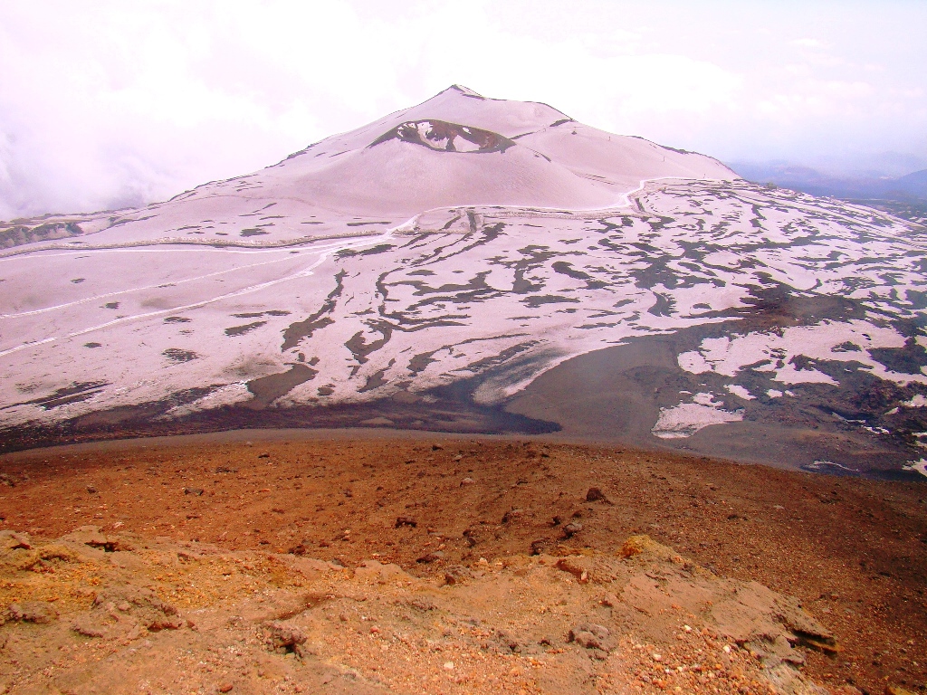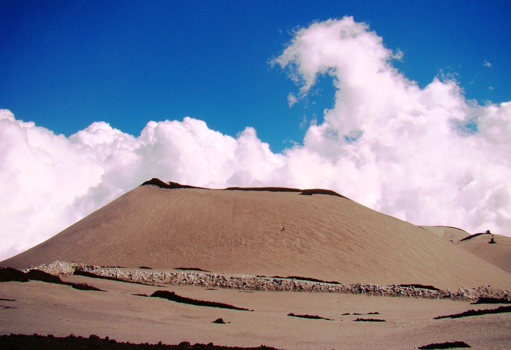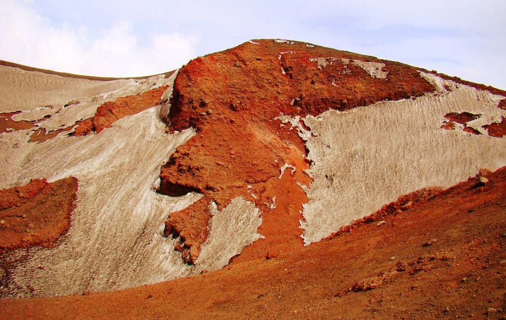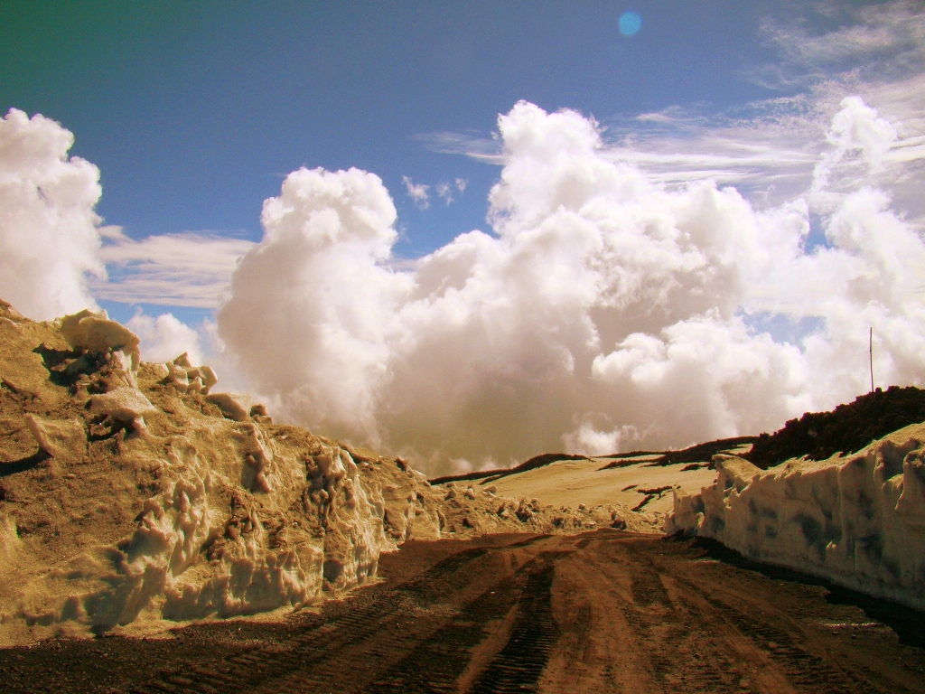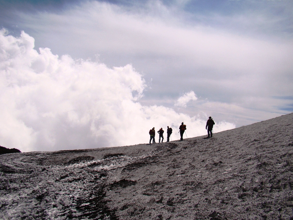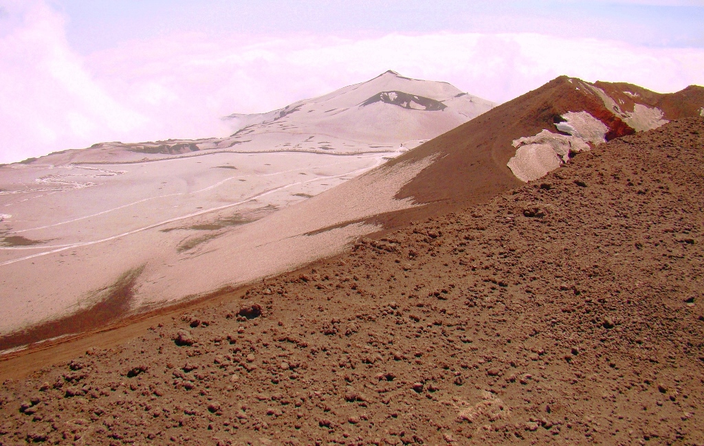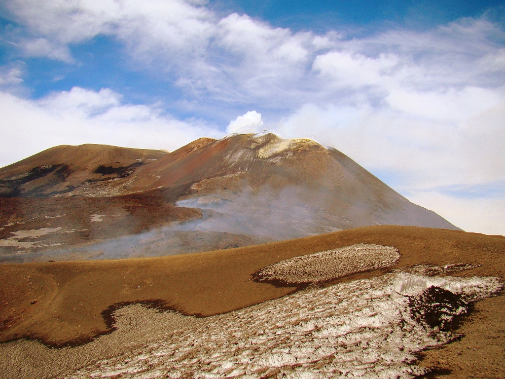 Dar să revenim. Nici nu apucăm bine să începem urcarea că ne și întâlnim cu salvamontul de pe Etna. Când mă vede cum sunt echipat, îmi recomandă să mă întorc. Facem totuși o poză împreună, apoi ei urcă într-o mașină de teren și dispar. Eu profit de moment și pornesc mai departe alături de Paulina și Darius.
