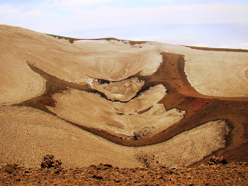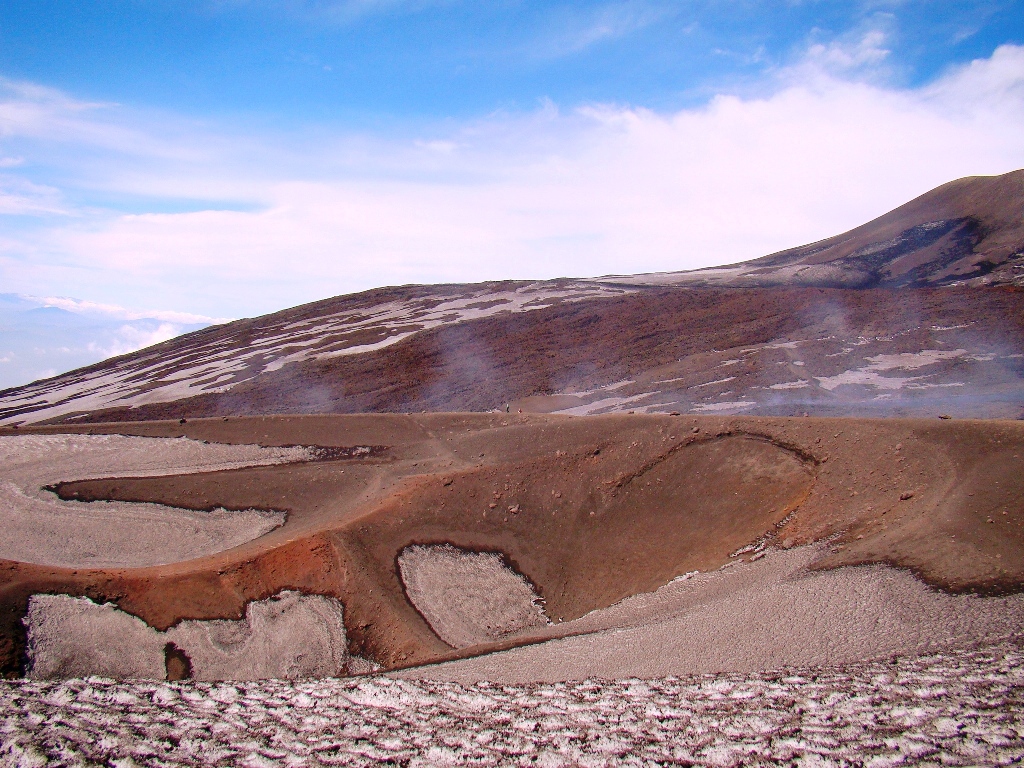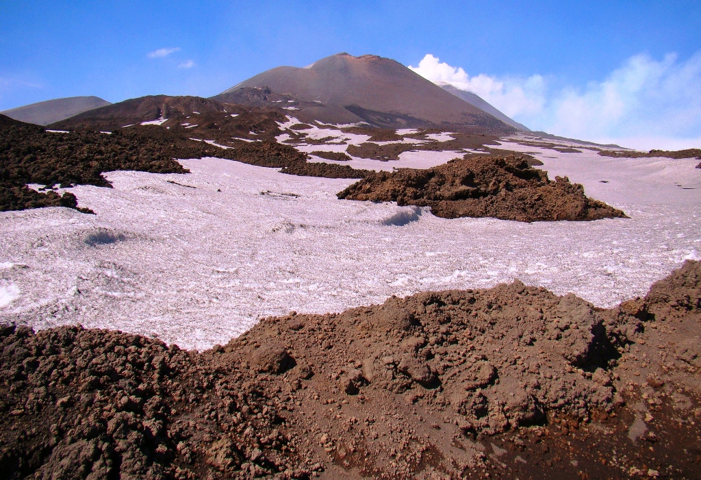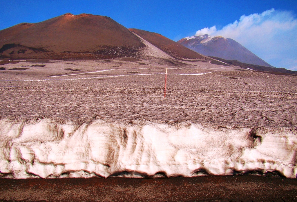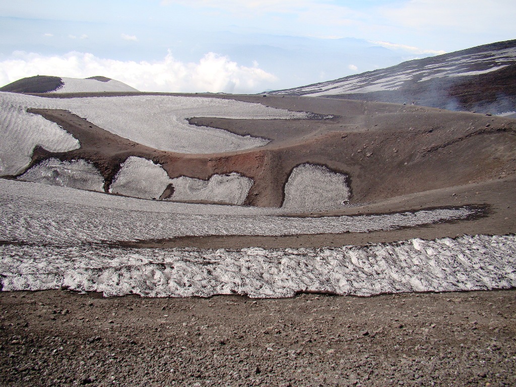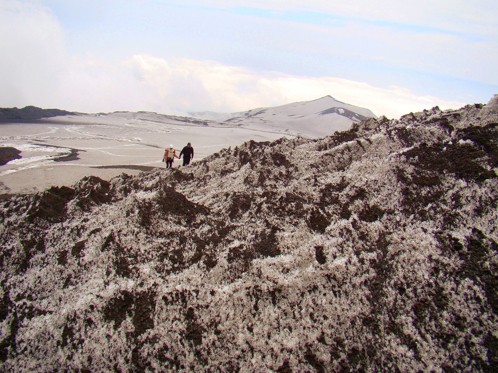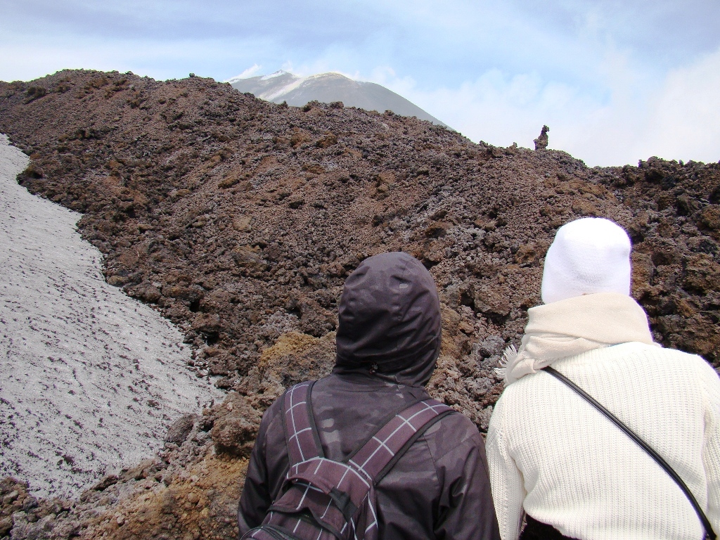 Pe prima porțiune mă împrietenesc cu Jordi și Yasmine, un cuplu simpatic din La Valletta, Malta. Râdem, povestim, facem poze, apoi drumurile noastre se despart. Eu continui singur, pe un traseu special amenajat, plin de utilaje grele, iar în unele locuri trec printre pereți de zăpadă de câțiva metri. Apoi, dintr-o dată, peisajul se schimbă: apare lavă. Lavă cât vezi cu ochii. Neagră, sfărâmicioasă, rece la atingere, dar cu focare fierbinți pe care, dacă ești puțin inventiv, le poți folosi pe post de aragaz ca să gătești ceva. Eu mi-am zis că o las pentru data viitoare. Etna îți oferă totul, trebuie doar să ai curaj să te apropii.