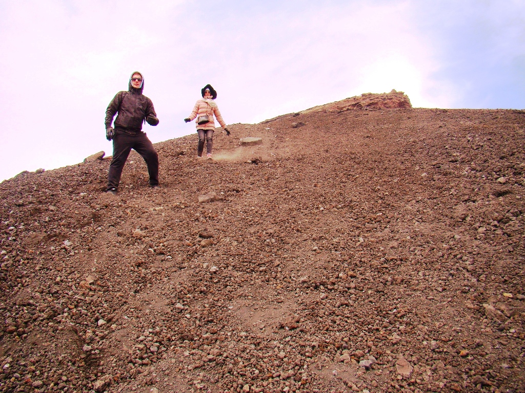 Apoi, pe un traseu circular, am coborât un versant plin de lavă sfărâmată. Pantofii mei au devenit plini de praf vulcanic, dar cine mai stătea să se plângă? Am făcut poze de bucurie, de mândrie, de nebunie.