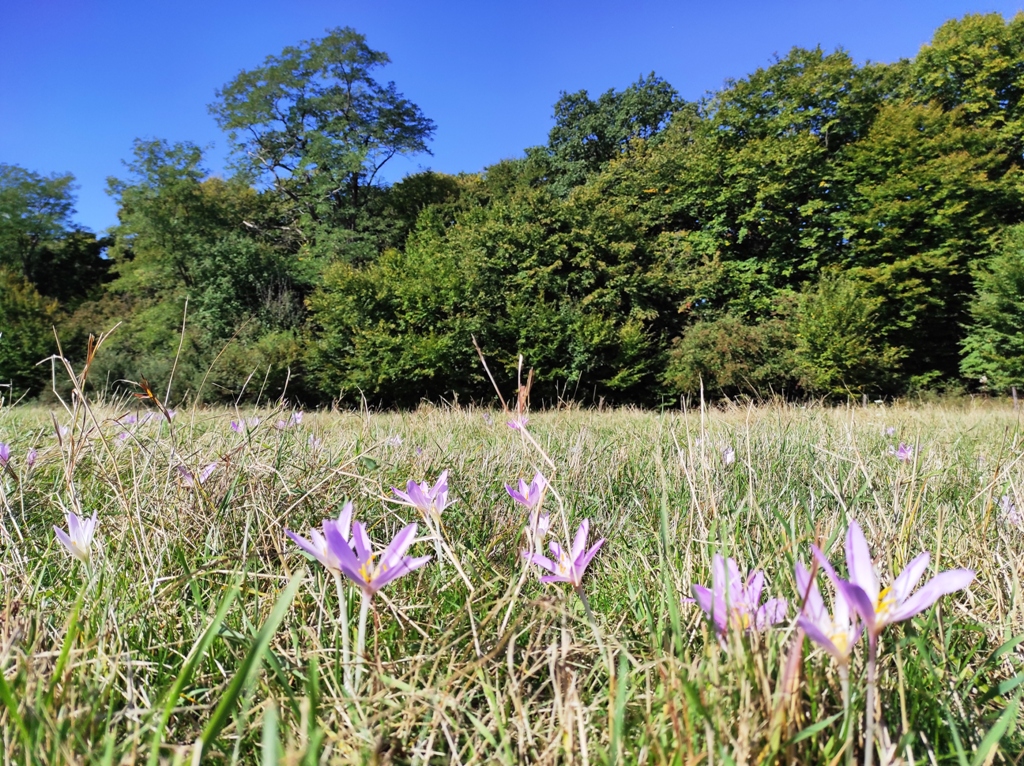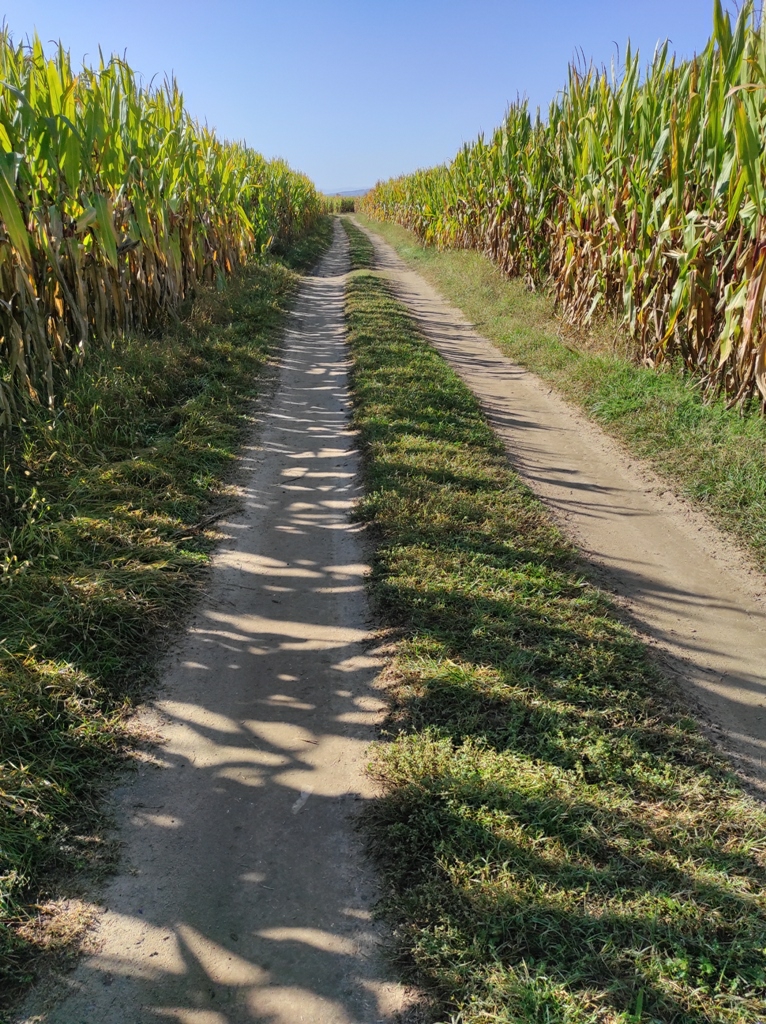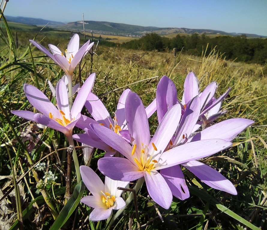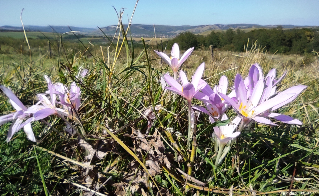 Plec destul de devreme, mă așteaptă un traseu de aproape 8 ore, însă după cam o oră de mers pe malul Târnavei, ajung din întâmplare într-un lan de porumb încât cred că o să mai ies de acolo doar atunci când proprietarul o să taie cocenii. Dar mă descurc eu cumva, ca doar sunt oltean, iar apoi pornesc mai departe şi tot colindând pădurile ornate cu multe raze de soare, ajung pe un platou unde dau de un covor minunat de brândușe de toamnă.