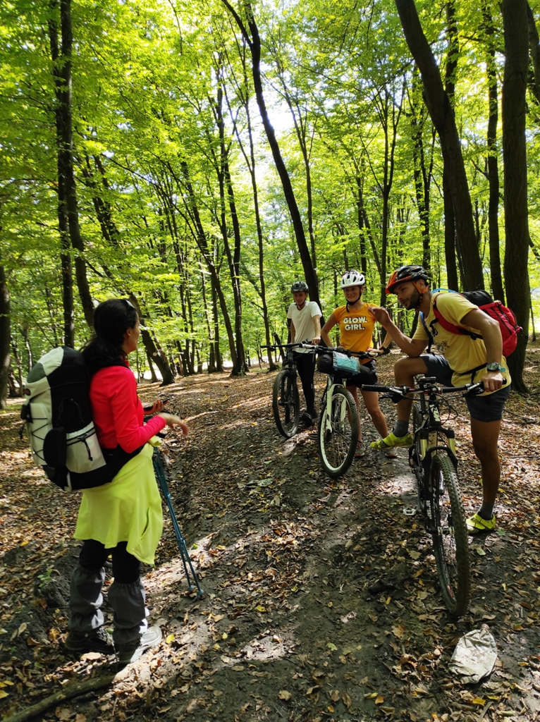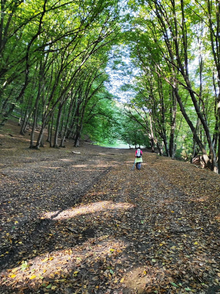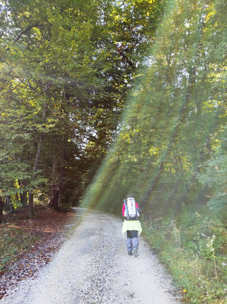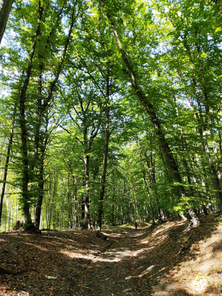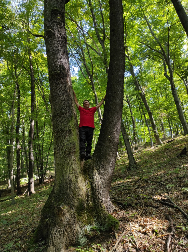 După experiența de la Bazna și după ce de dimineață l-am cunoscut și pe domnul Werner, care îmi spune că și-a dat seama că sunt oltean că vorbesc puțin iar eu îi spun că din contră oltenii vorbesc mult, traseul nostru trece prin câmpii și păduri cu copaci prietenoși, pe unul chiar îl îmbrățișez, că se spune că dă energie.