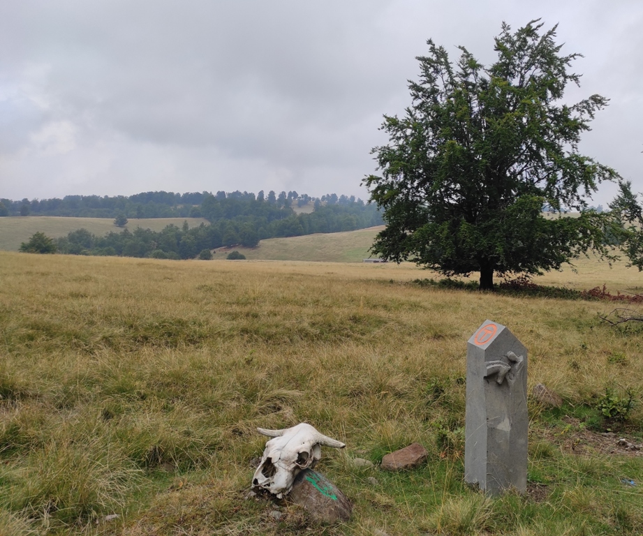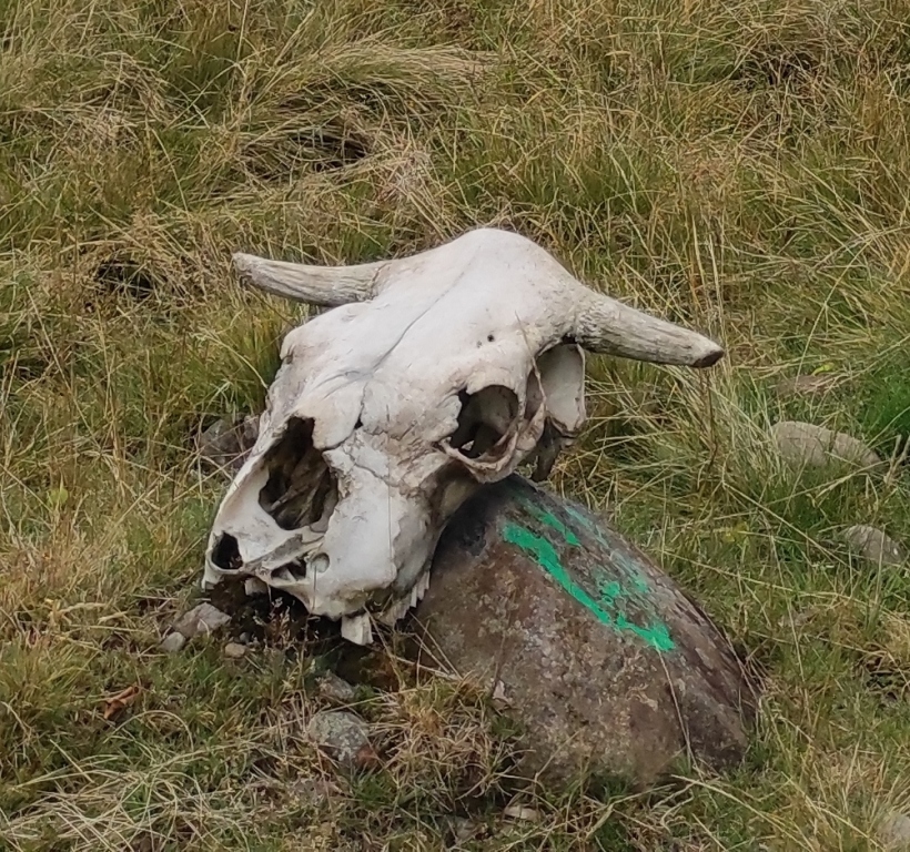 Apoi, sus în poiană ajung şi la deja celebrul craniu de viţel care vrea să bage spaima în oameni şi desigur că nu ratez momentul de a face şi poze împreună.