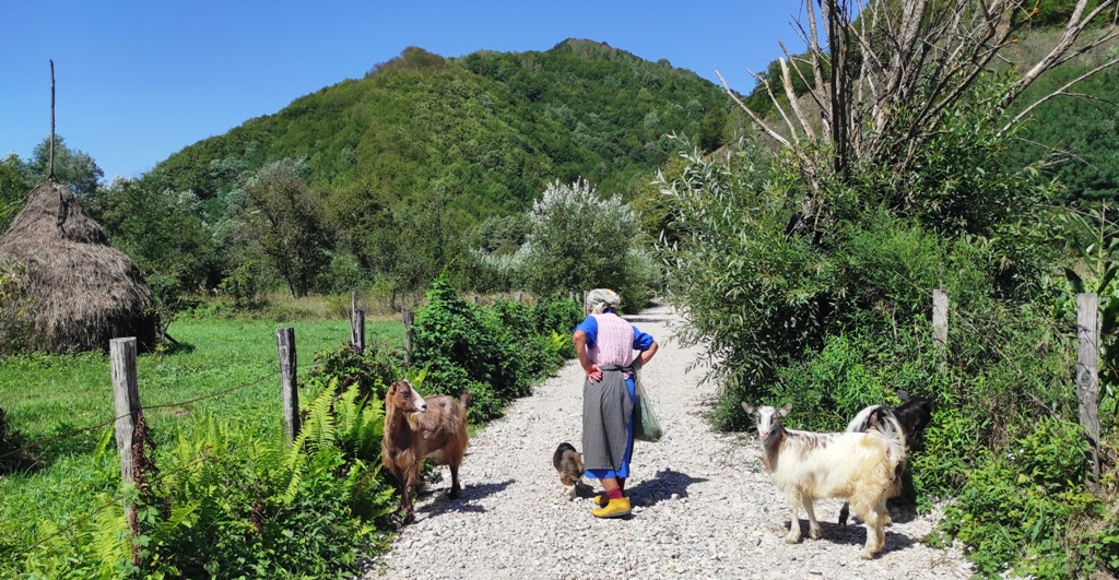 Cu strângeri de mână și multă emoție mă despart de fostul meu coleg de liceu și plec la drum și mă orientez după harta mea online care m-a ajutat mult în peregrinările mele, și ajung în Băuțar, trec apa ca să nu merg pe asfalt, mă întâlnesc cu nea Petru Mărintoiu care e cu coasa și nu prea aude prea bine dar mă invită să stau un pic la umbră și să beau o gura de apă, apoi după ce plec o întâlnesc și pe tanti Florica care are vreo trei capre și pe Azorică, iar după aceea după vreo oră de mers ajung din nou la asfalt dau de indicatoarele de pe Via merg pe ele și constat cu stupoare că am ajuns din nou la… Marga!