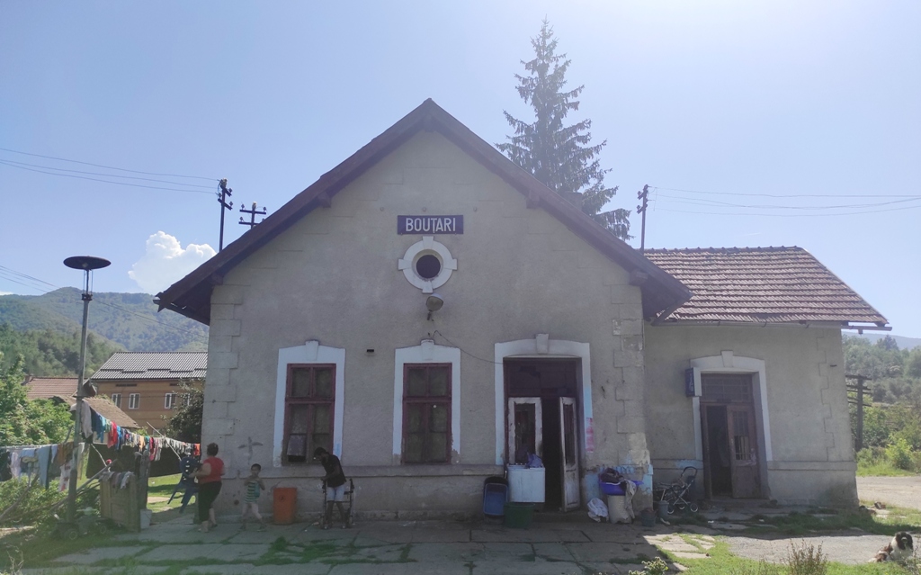 Trec și pe la gara din Băuțar, găsesc o mizerie cruntă întâlnesc câțiva oameni care cum mă văd o și iau rapid la sănătoasa, apoi îmi continui traseul pe terasament, numai sunt nici traverse și nici șină doar piatră multă și nici nu știu cât îmi mai rezistă bocancii mei.