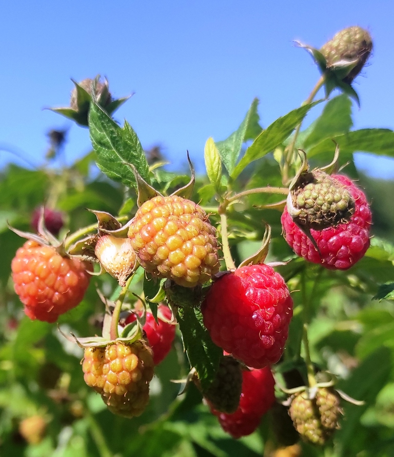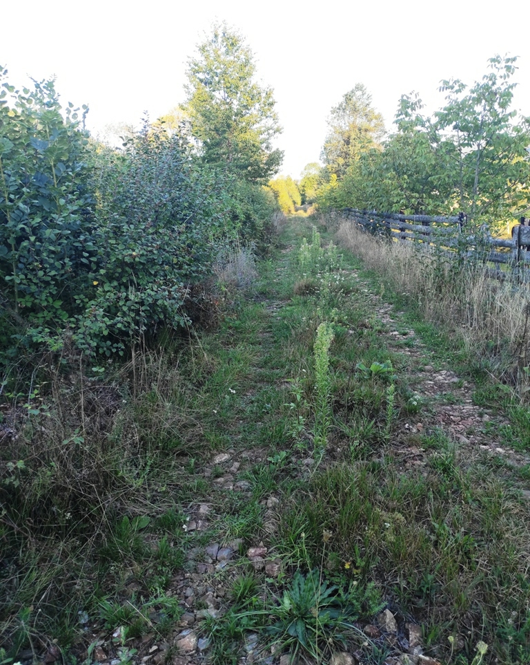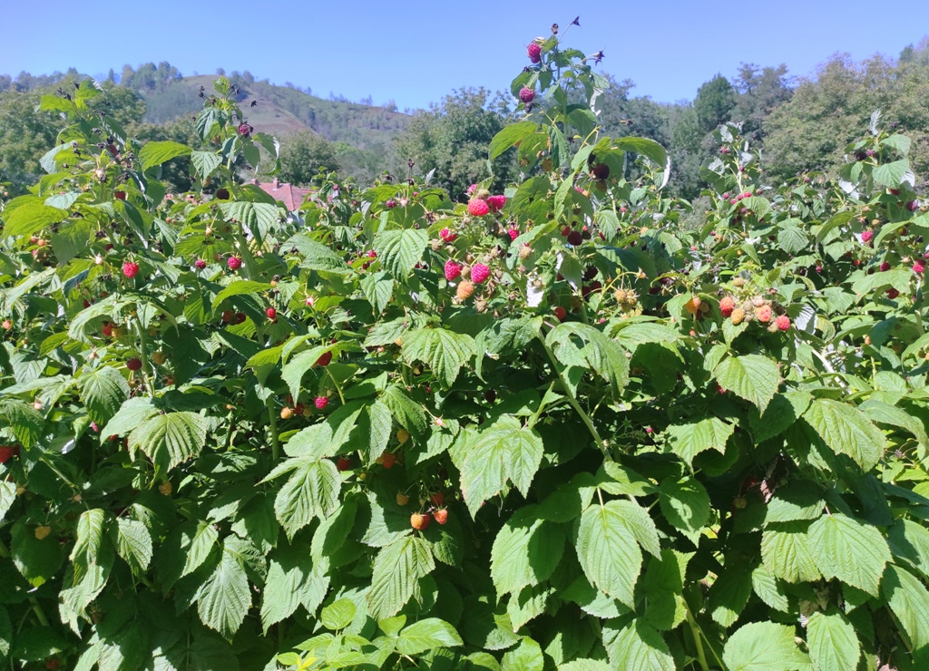 Așadar mă întorc, acum pe drumul cel bun, merg pe terasamentul fostei cai ferate acolo unde se poate, dar și pe asfalt, și îmi apare în fața mea o minunăție de plantație de zmeură mă ospătez cu câteva exemplare, nu prea mă satur, dar în schimb întâlnesc atâta hrană a zeilor încât nu știu cum să mai scap de ea, că eu sunt și aşa tare alergic la ambrozie!