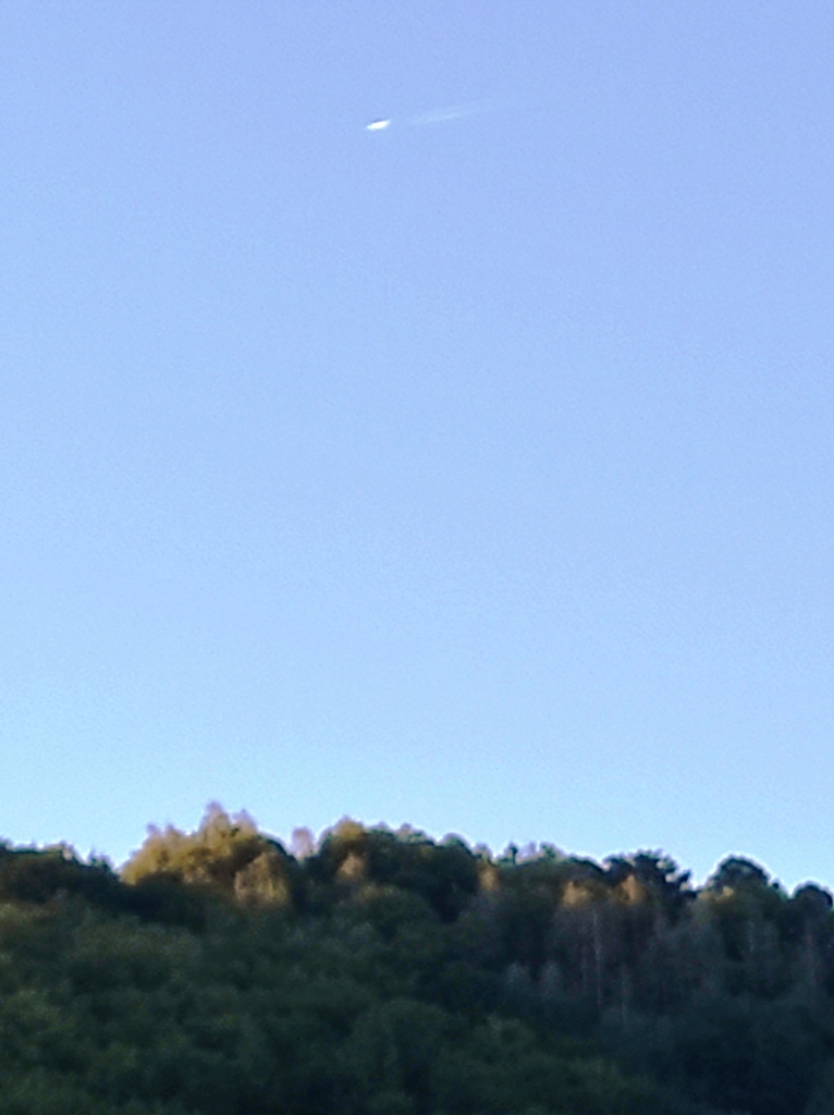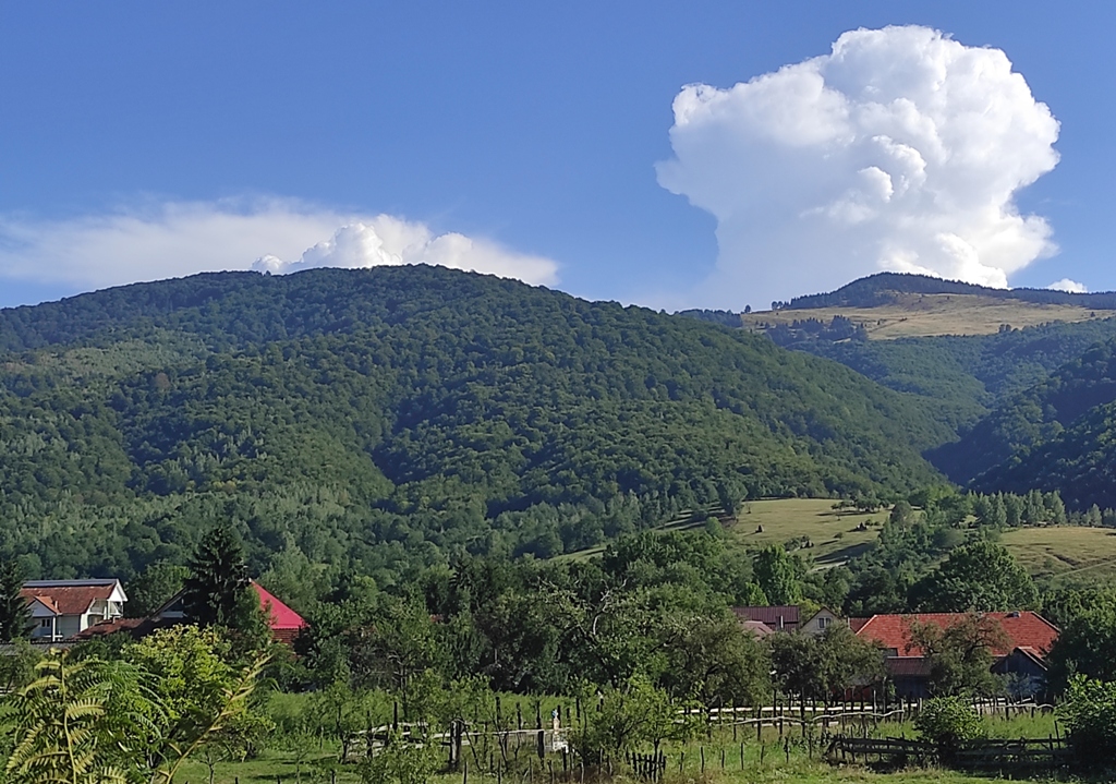 În drum spre Pensiunea Mimi, trec prin sat și mă uit pe cer, văd un avion iar sub el un pic mai jos, un ozeneu, mă uit lung după el cum se plimbă pe cer… și sper că nu e de la foame.
