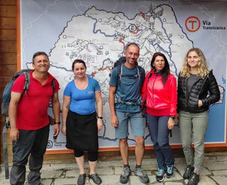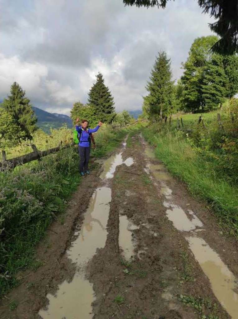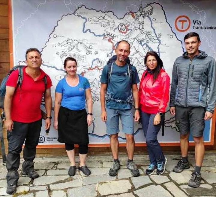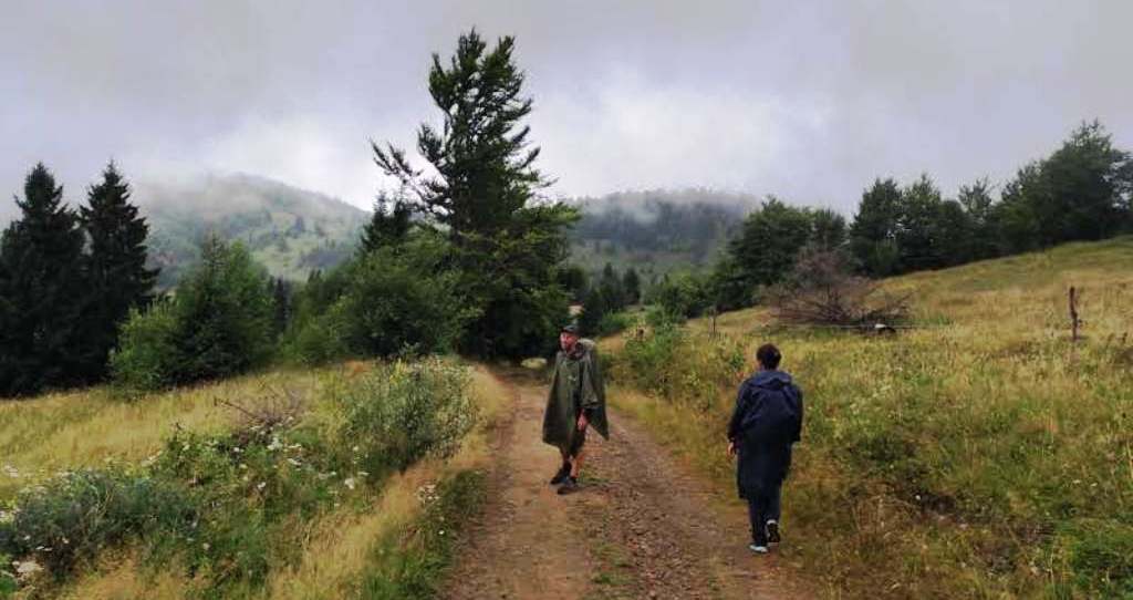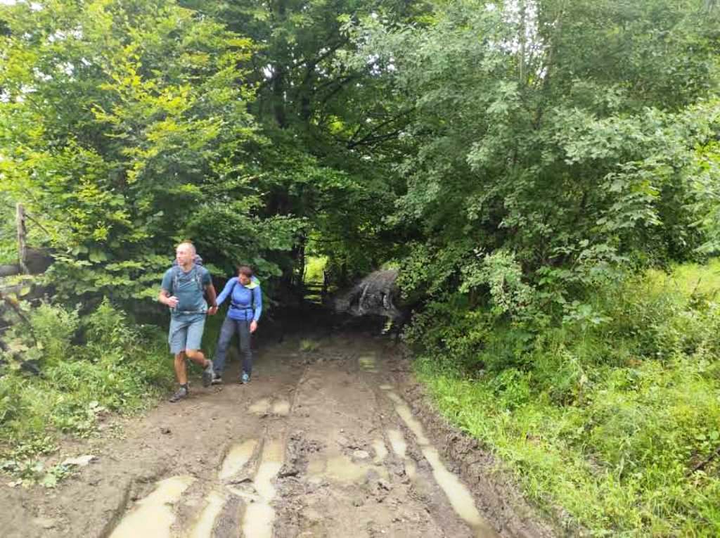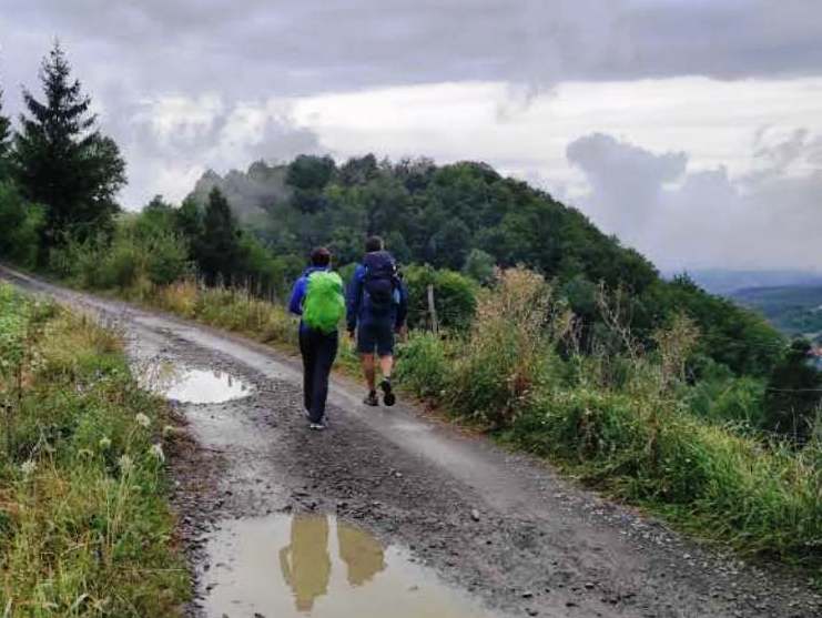 După o prezentare și un filmuleț foarte interesant despre începuturile Via Transilvanica, alături şi de un simpatic grup de la Galaţi care pun mână de la mână şi cumpără şi o bornă cu un melc simbolic, şi după cum suntem şi acompaniaţi în tot acest timp şi de o ploaie teribilă care până la urmă tot se opreşte, amânăm plecarea și pornim mai departe cam după ora 13. Avem vreo 25 de km până la Bistrița Bârgăului și sperăm să nu ne prindă noaptea!